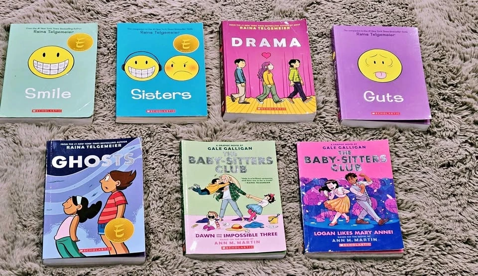 Full set of Smile series by Raina Telgemeier + 2 Baby Sitter club graphic novels. One of the most loved graphic novels by many pre-teens. Please check out my other listings of books. Bundle deal will be provided if multiple sets are purchased at the same time. Cash Only please. FCFS with clear pick up time/appointment specified by message. No Holds.