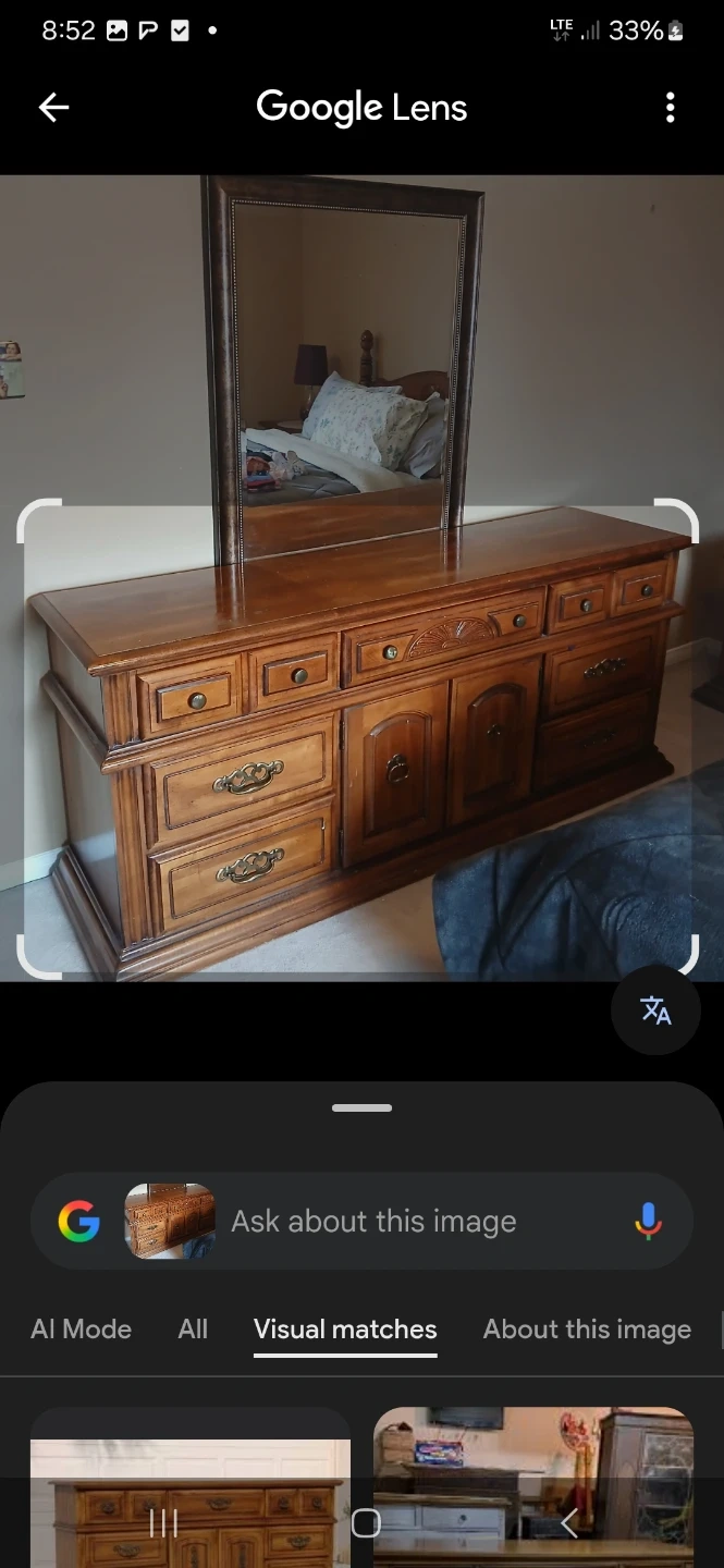 comes with armor , 2 side dressers , long large dresser with 2 mirrors and bed frame