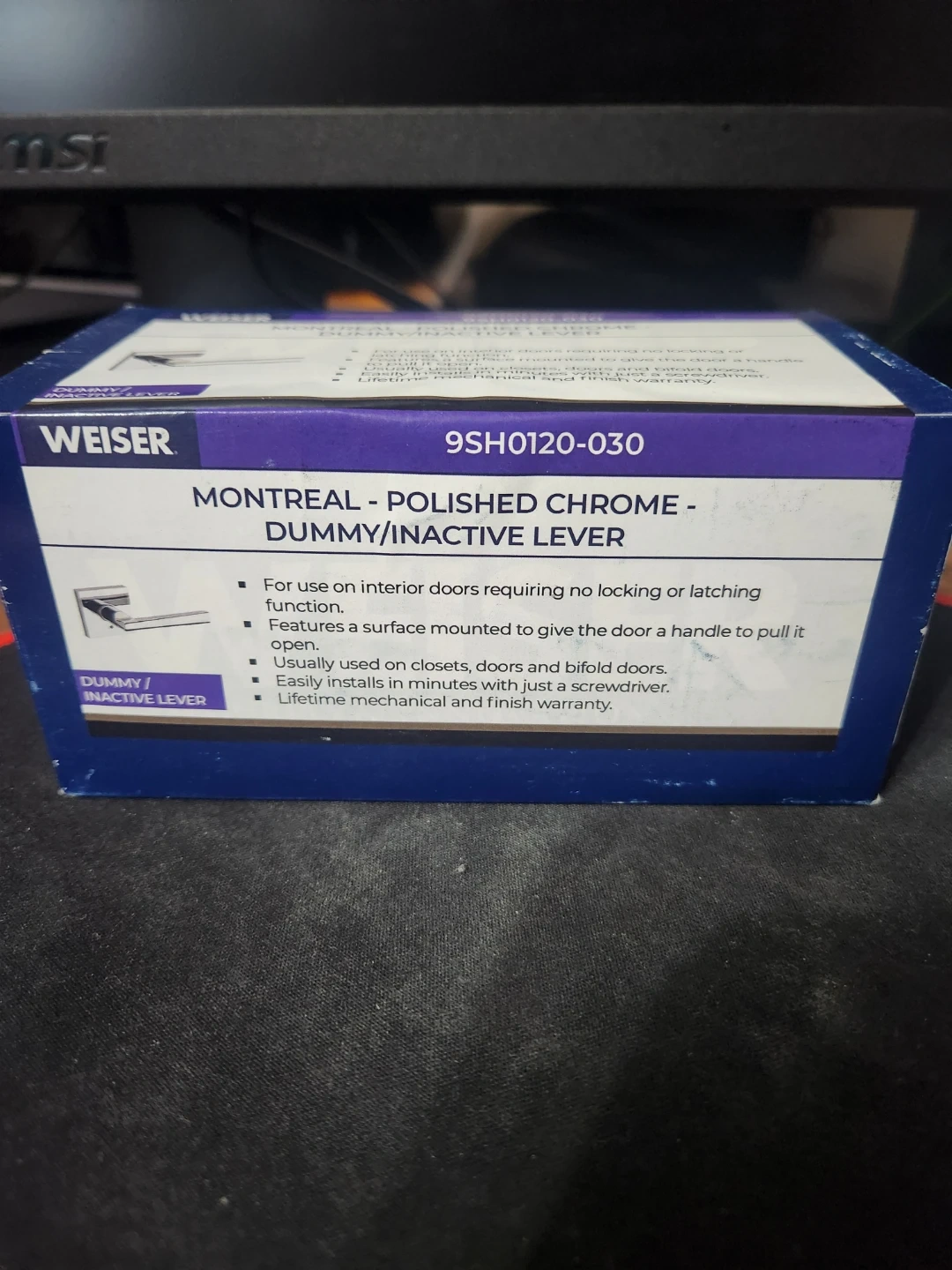 Weiser Montreal dummy lever in polished chrome. Designed for interior doors requiring no locking or latching function. It features a surface mount to give the door a handle to pull it open. Usually used on closets, doors, and bi-fold doors. It's easily installed in minutes with just a screwdriver.