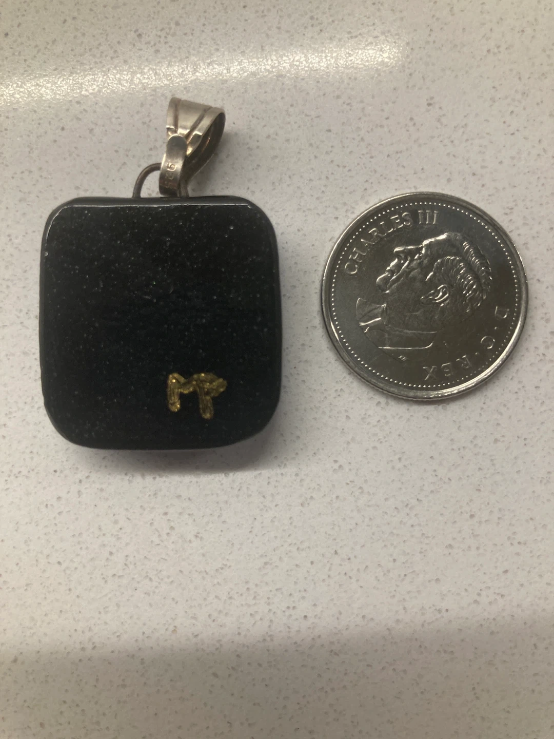 Square dichroic glass pendant with a blue and purple shimmering effect. Features a dark blue grid pattern in the centre. Sterling silver bail for hanging. Pendant is approximately 3cm tall and 2cm wide.
