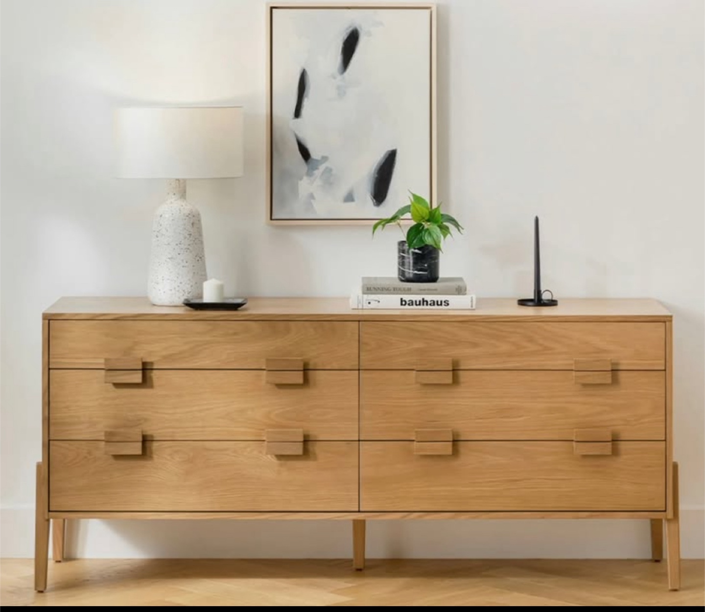 Here's a lovely wood dresser with six drawers! It would be a great addition to any bedroom or living space. The drawers offer ample storage space for clothes or other items.
