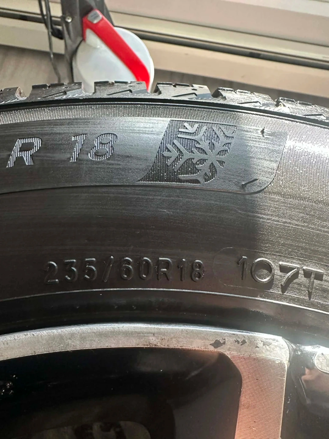 Set of four 235/60R18 Michelin X-Ice Snow SUV winter tires mounted on Honda OEM alloy wheels. These are great for Canadian winters, offering excellent traction on snow and ice. Come check them out!