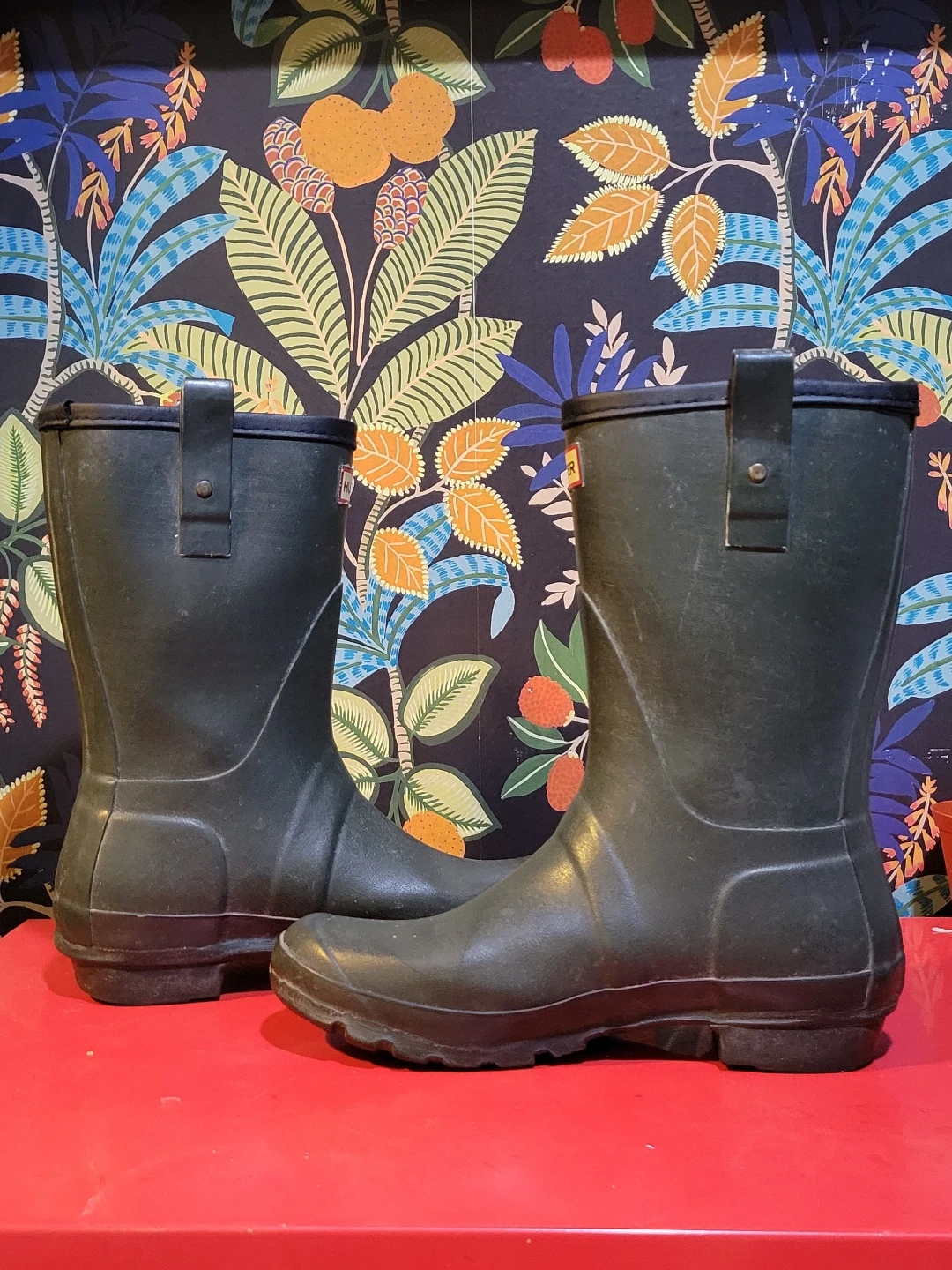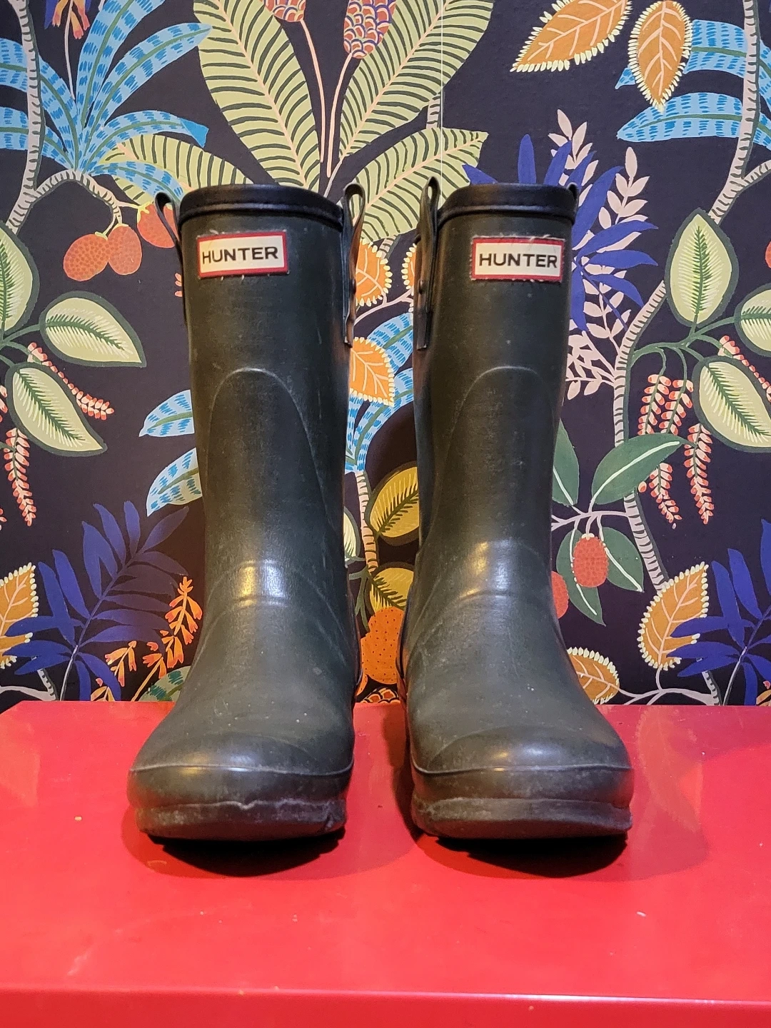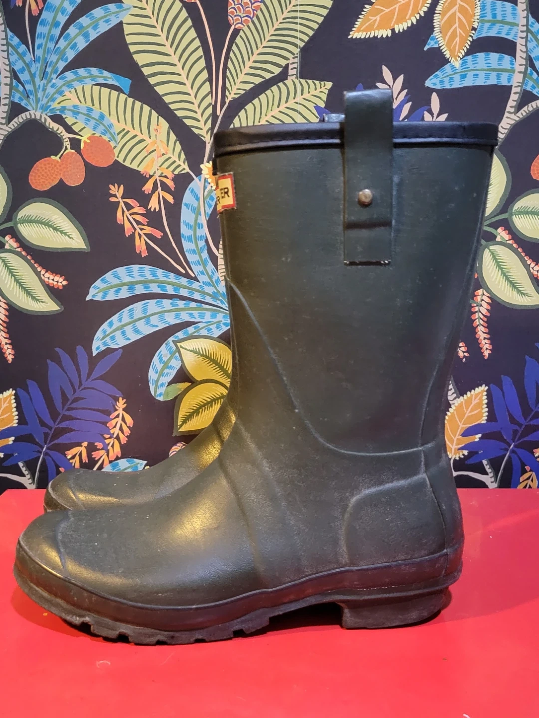 Hunter tall green rain boots. Rubber material. These boots are great for wet weather and outdoor activities. Used but still in good condition. Size 8M/9F