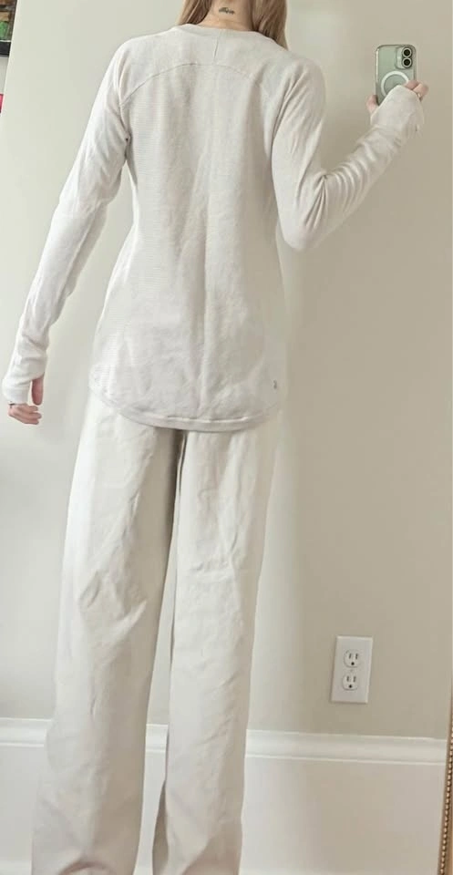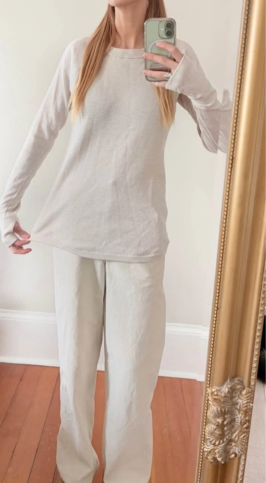 Super soft, cute, light weight off white/beige sweater from Lulu Lemon! Fabric is 100% Merino wool, size small. Tiny hole near one of the thumb holes pictured in video. Besides that one small imperfection, everything else is great quality! $30 OR best OFFER! Pick up is preferred, but can drop off in the Victoria area! Make sure to take a look at ALL my other listings. Selling a BUNCH of good quality clothing 😊