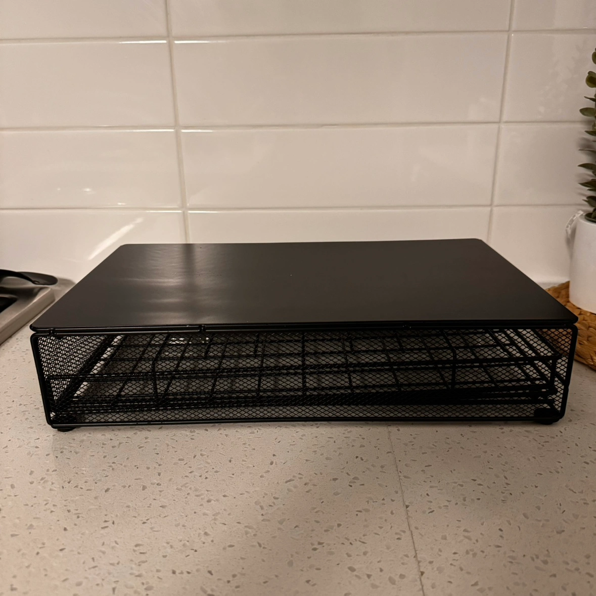 - Black metal K-Cup pod storage for organizing your coffee pods