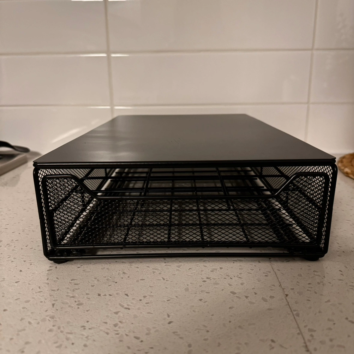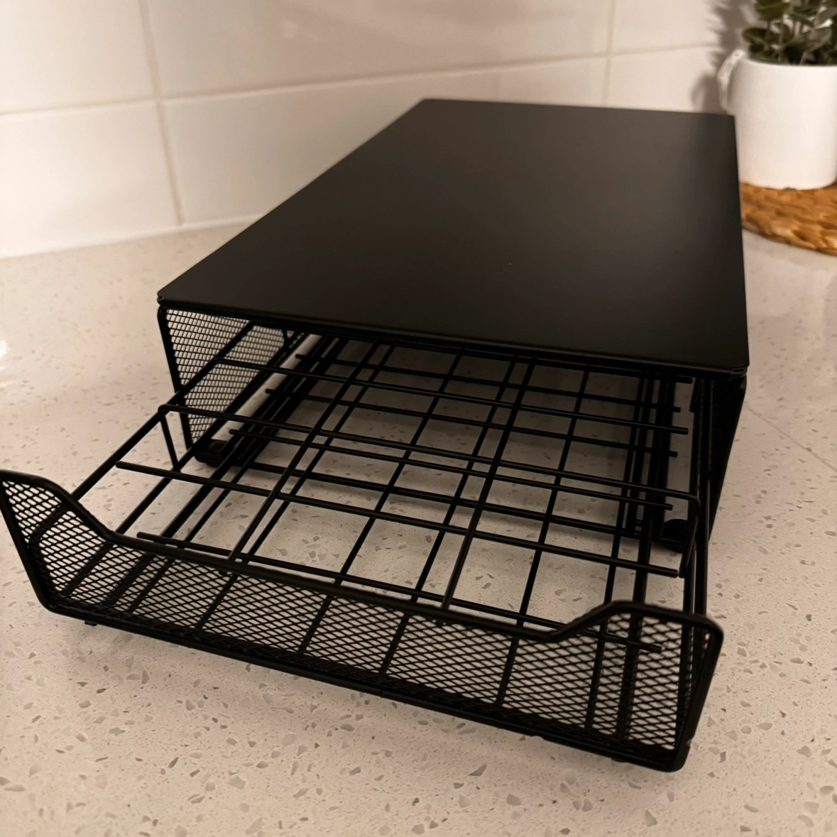 - Black metal K-Cup pod storage for organizing your coffee pods