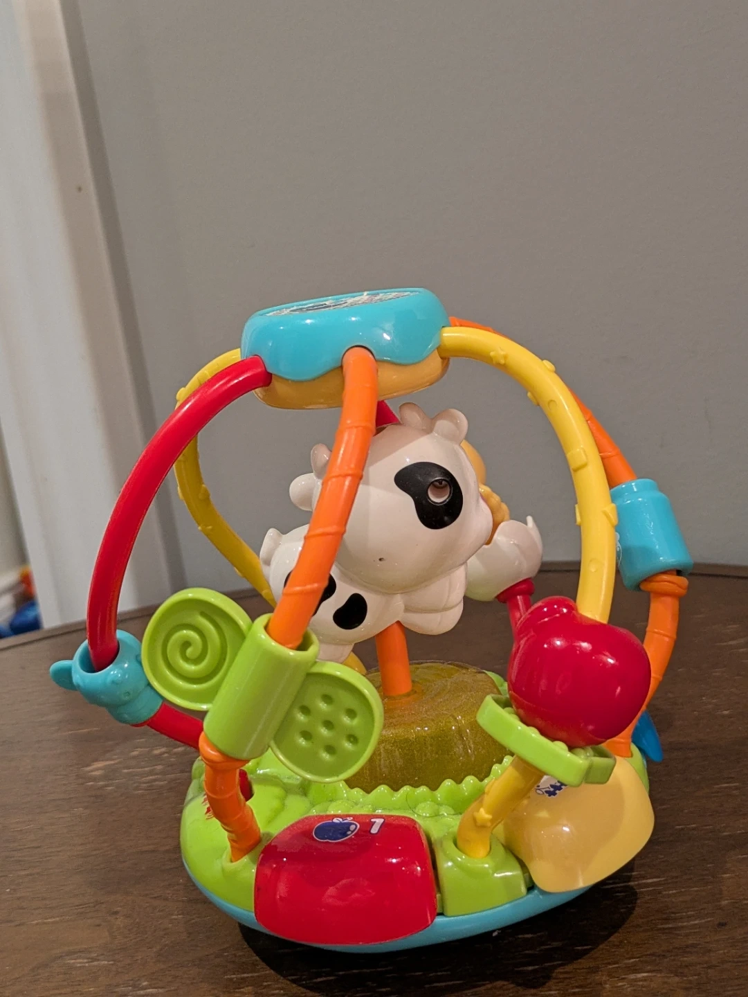 This is a VTech Lil' Critters Shake & Wobble Busy Ball. It is in a good condition and ready for a new little one to enjoy! It features colourful animals and shapes to stimulate your baby's senses and encourage motor skills development, along with sounds and music.