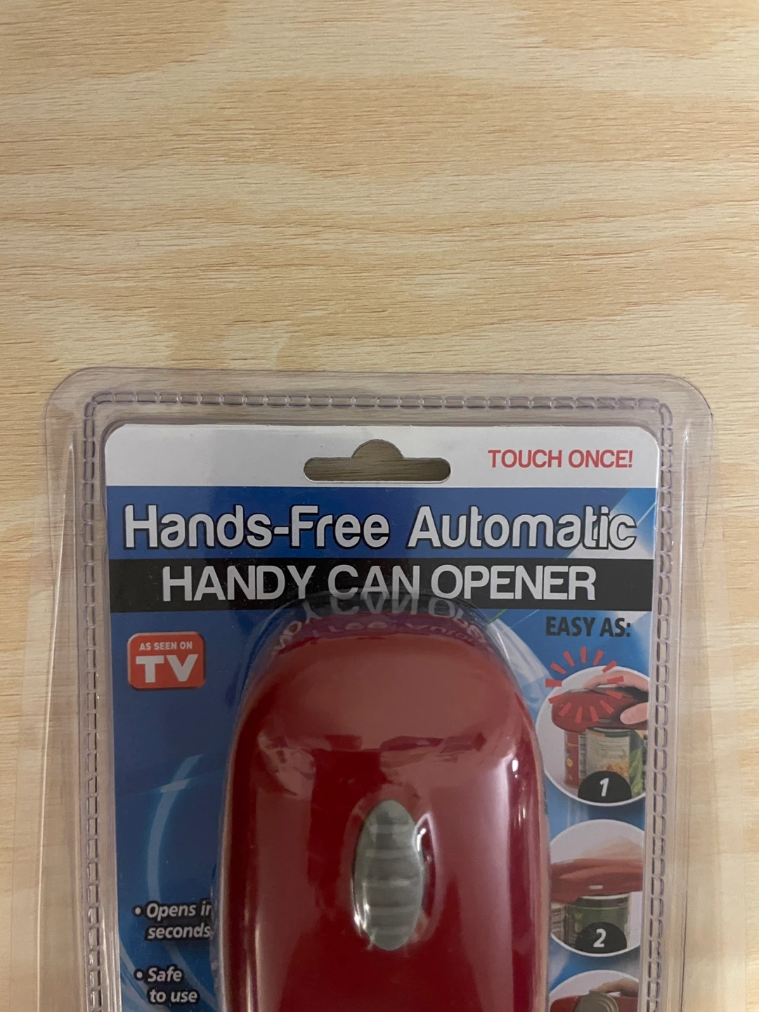 Brand new Hands-Free Automatic Handy Can Opener. It uses 2 AA batteries (not included).