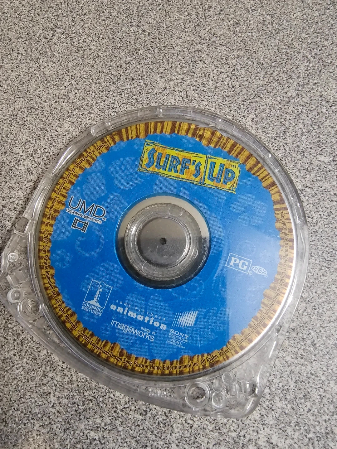 This is the UMD disc for the PSP GameSurf's Up. It's a PG-rated animated film from Sony Pictures Animation. The disc is in a protective case.