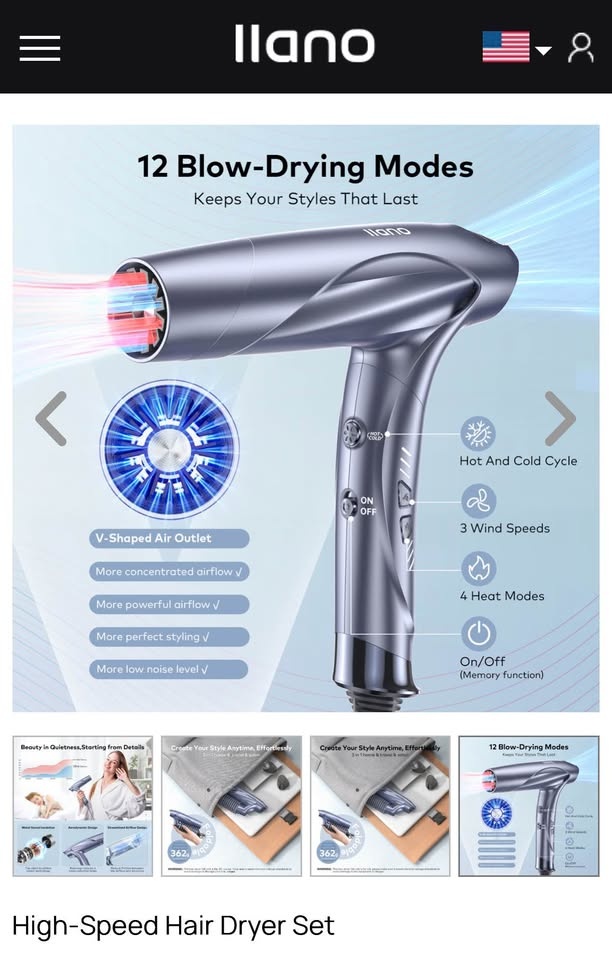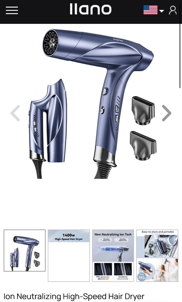 New llano Brushless Motor Ionic Hair Dryer, Light-Weight Travel Folding Blow Dryer, Llano Professional Salon Fast Drying Hairdryer with Hair Care Ions, 100time/S Heat Sensor Hair Anti-Scald, Hot&Cold Cycles
