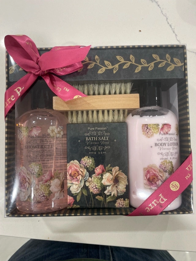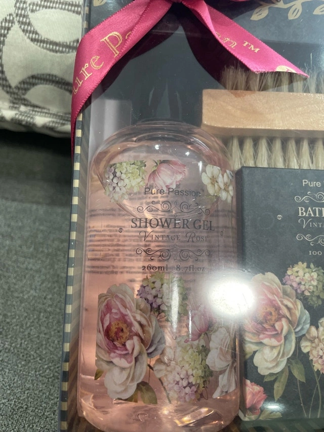 Indulge in the luxurious essence of the Pure Passion Vintage Rose set, featuring shower gel (260ml), body lotion (260ml), bath salts (100g), and a wooden brush. This set offers a complete pampering experience, enveloping you in the delicate fragrance of vintage roses. Specifications: Shower Gel: 260ml, Body Lotion: 260ml, Bath Salts: 100g, Includes: Wooden Brush. If the ad is up, the set is available.