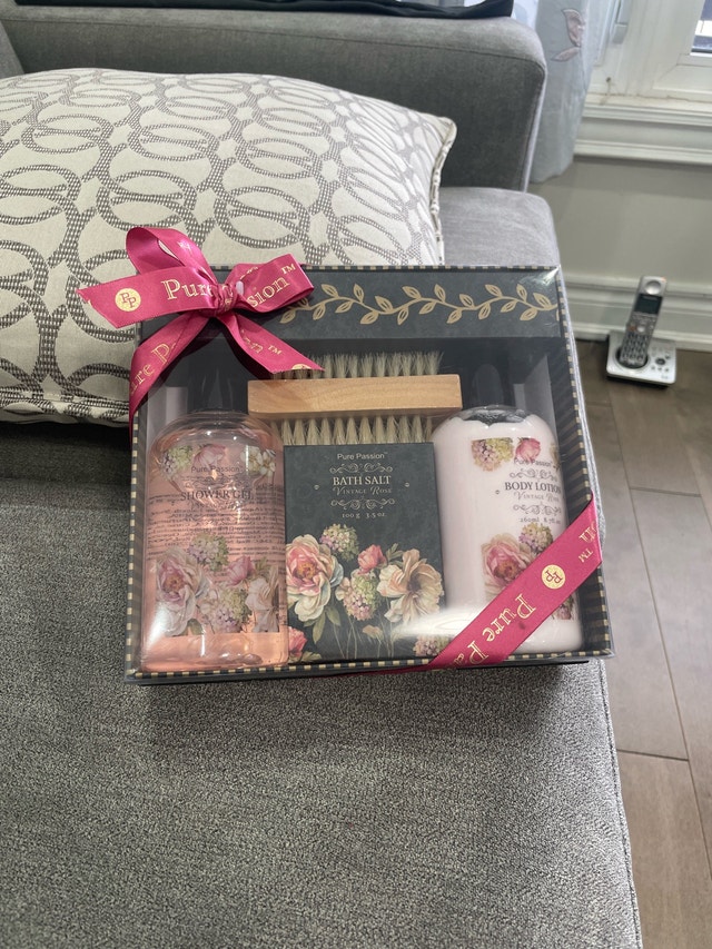 Indulge in the luxurious essence of the Pure Passion Vintage Rose set, featuring shower gel (260ml), body lotion (260ml), bath salts (100g), and a wooden brush. This set offers a complete pampering experience, enveloping you in the delicate fragrance of vintage roses. Specifications: Shower Gel: 260ml, Body Lotion: 260ml, Bath Salts: 100g, Includes: Wooden Brush. If the ad is up, the set is available.