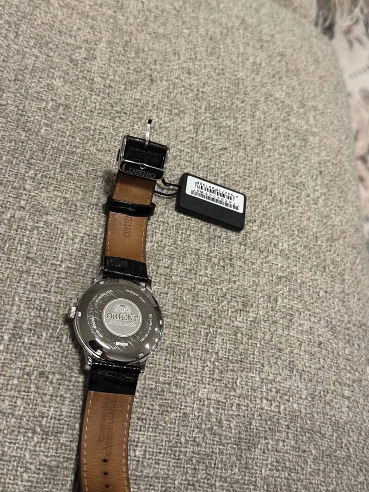 Worn a few times, but I wear my other watches more so it’s time to let go of it. This is the Orient FAC00005W0 Men's 2nd Generation Bambino White Dial Brown Leather Band Watch. Pickup in Seton.