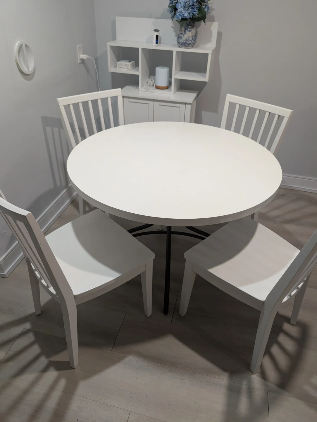 Real wood (not chipboard) White Round Dining Table with 4 Chairs