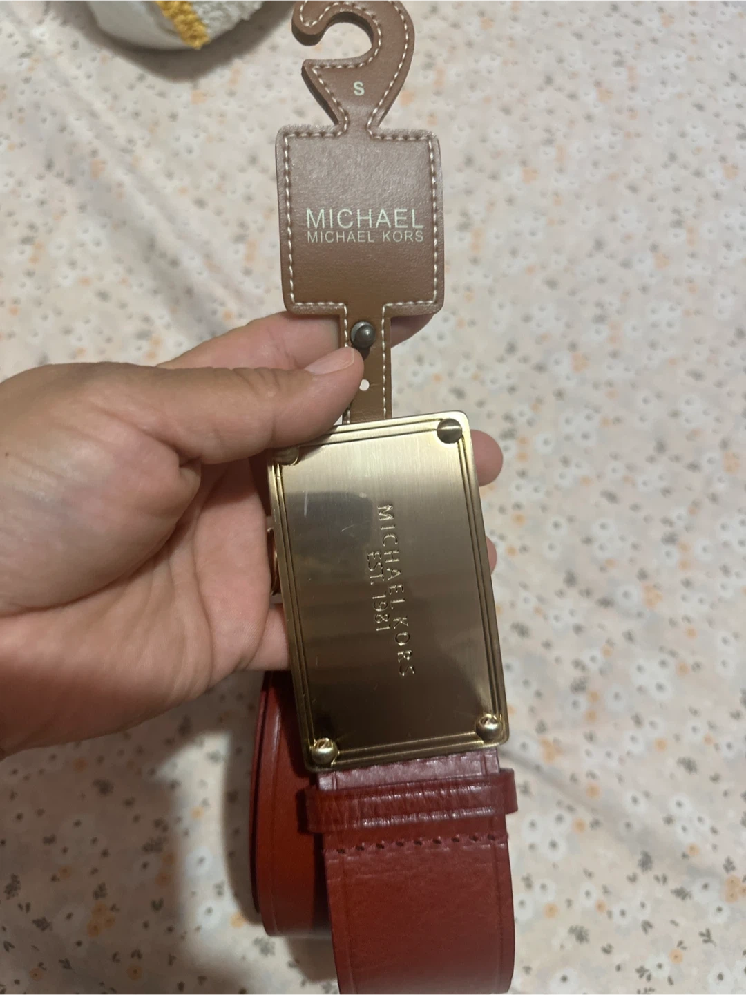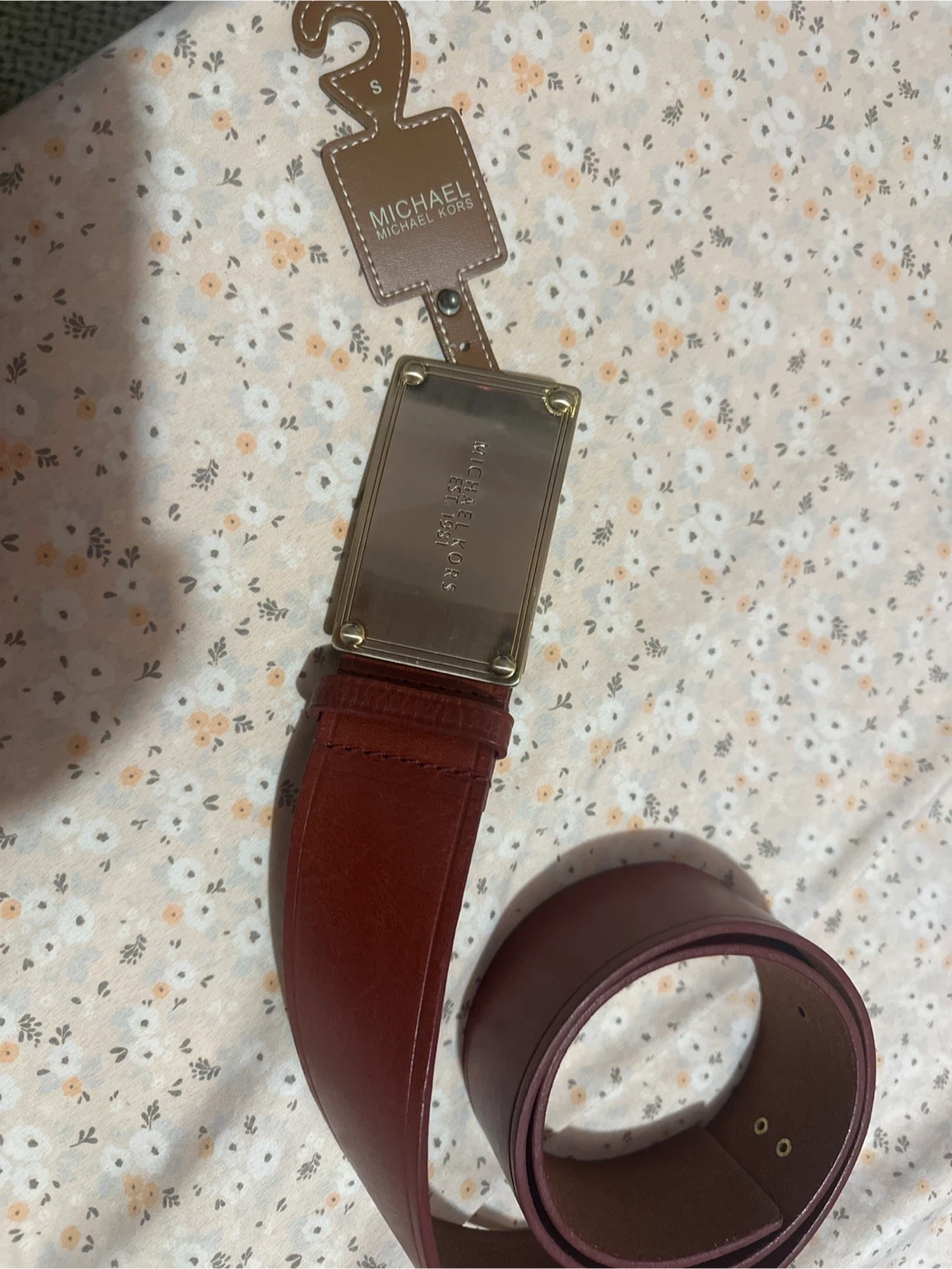Selling a stylish Michael Kors belt in a beautiful red leather! It's a size small and features a gold-tone buckle. Perfect for adding a pop of color to any outfit