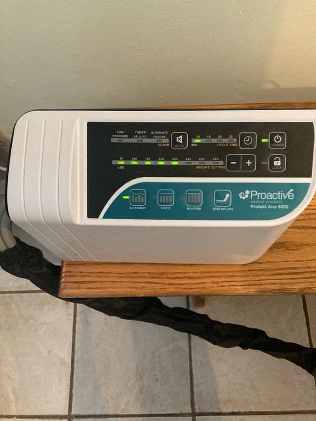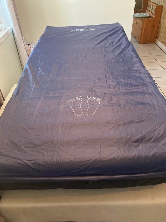 Brand new in box Protekt 6000 air mattress and pump with adjustable bed. The fully electric adjustable bed (Brand: Drive) features a remote with six buttons. It can raise/lower the entire height from 1 foot to 3 feet. The bed can incline from a lying to a sitting position and decline back to lying. It also has a knee rest for support when sitting up. The Protekt 6000 mattress is a low air loss pressure mattress with a customizable pump to adjust firmness or softness, and other modes are available. Both are brand new in manufacturers boxes, never used. Dimensions approximately 36” by 80”. For home use only. Adjustable bed: $400. Protekt 6000 mattress + Pump: $800. Buy both for $1000. Full length or half length side rails are available. Cash accepted.