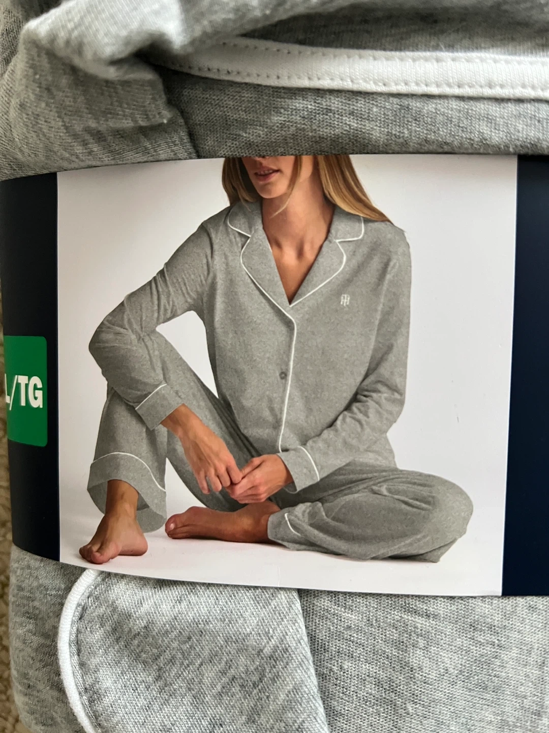 Tommy Hilfiger 2-piece pajama set in size XL. This set is a comfy grey colour and includes both the top and bottoms. Perfect for lounging around the house!