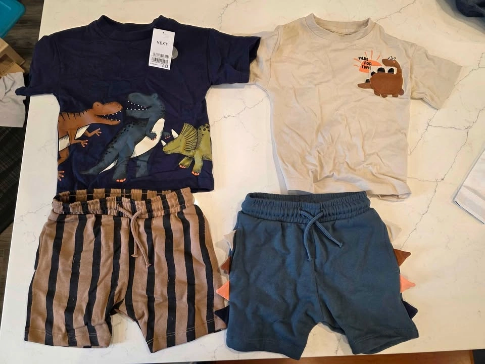 Brand new baby boy clothing bundle (12-18 months), all 3 complete outfit sets with tags. Includes: 2 premium NEXT 4-piece outfits (multiple tops and shorts included), 1 adorable 3-piece formal set (vest, shirt, pants). Perfect ready-to-wear outfits — great for everyday or special occasions. Retail value over $100. Smoke-free, pet-free home. Pickup in Scarborough (Meadowvale and Ellesmere).