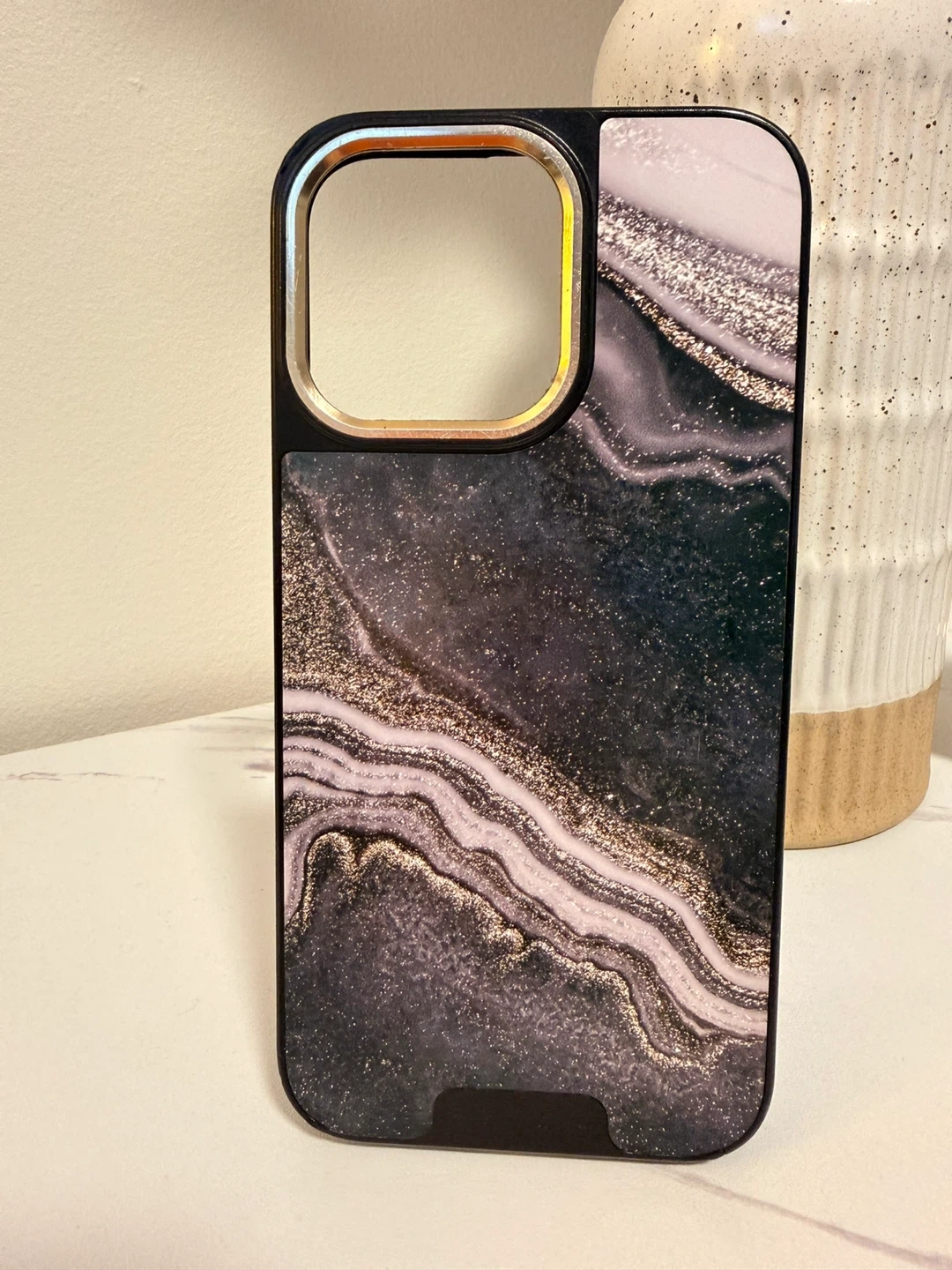 Burga cases are durable and basically indestructible. This is a Burga Elite iPhone case for iPhone 15 Pro Max with a beautiful marble design! It's in great condition and will keep your phone protected in style. The case features a black and gold frame, adding a touch of elegance to your device. Perfect for anyone looking for a stylish and durable phone case!