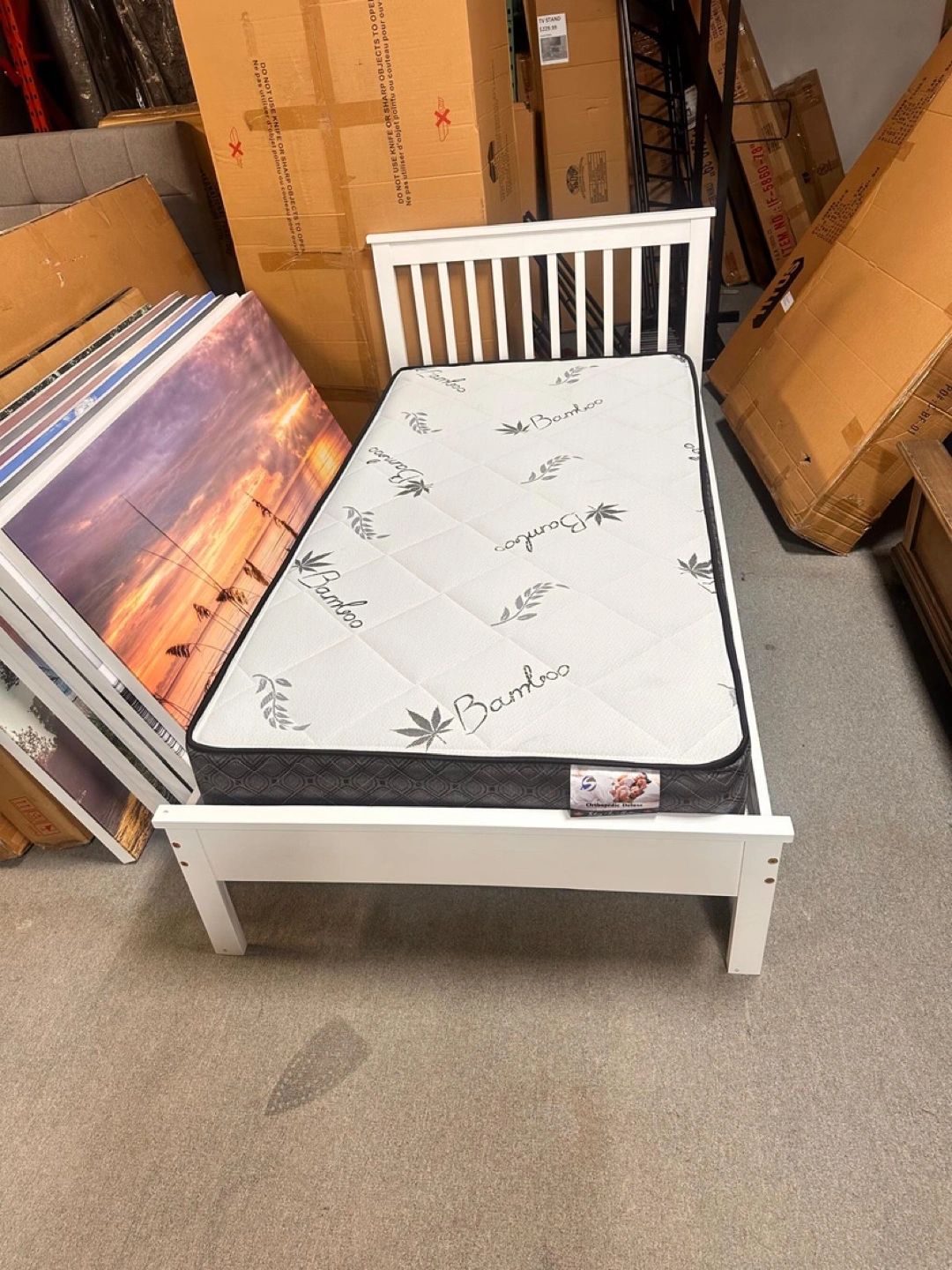 Selling a Bamboo mattress with a white bed frame. Both comes new - no box required On sale both items for $299