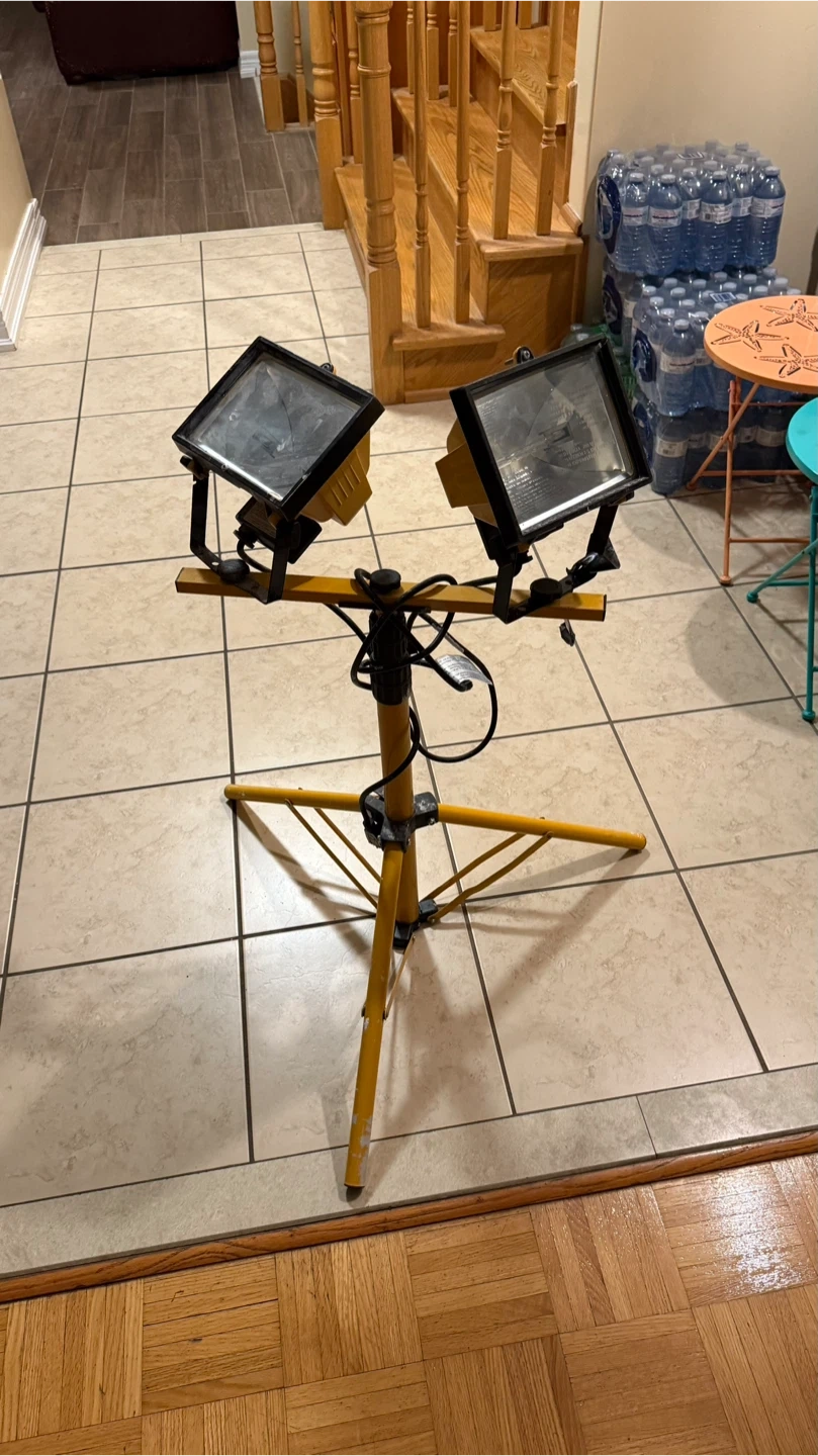 35Selling a twin head halogen work light with a yellow tripod stand. Great for providing extra light for projects or tasks around the house or jobsite