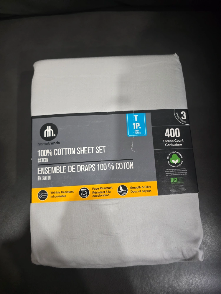 100% Cotton Twin Sheet Set – Grey Brand new, never used. Super soft and breathable cotton. Perfect for dorms, kids’ rooms, or guest beds. - 1 Twin Flat Sheet - 1 Twin Fitted Sheet - 1 Standard Pillowcase 📍 Pickup in Downtown Edmonton
