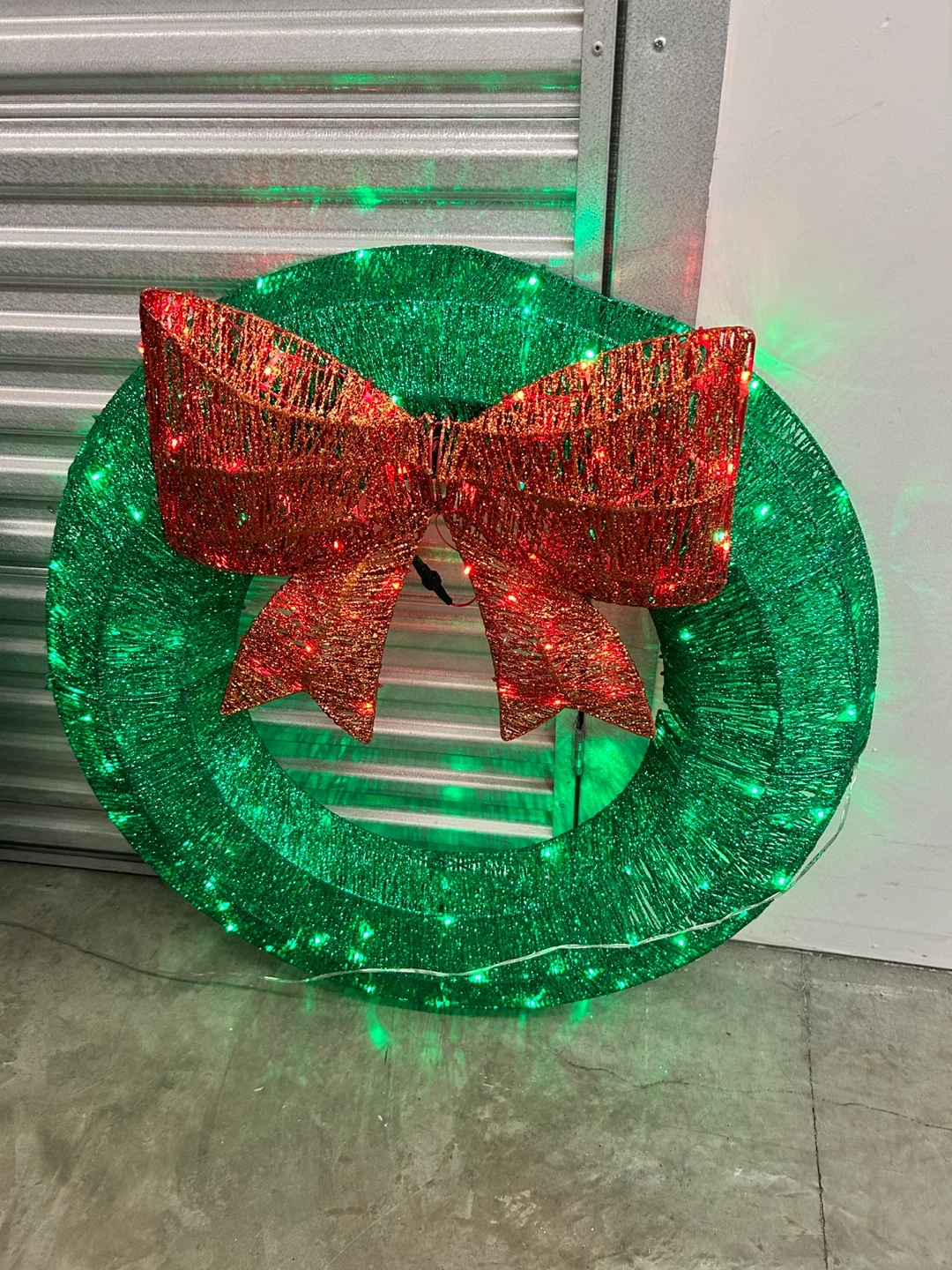 Twinkle Light Christmas Wreaths with Red Bow