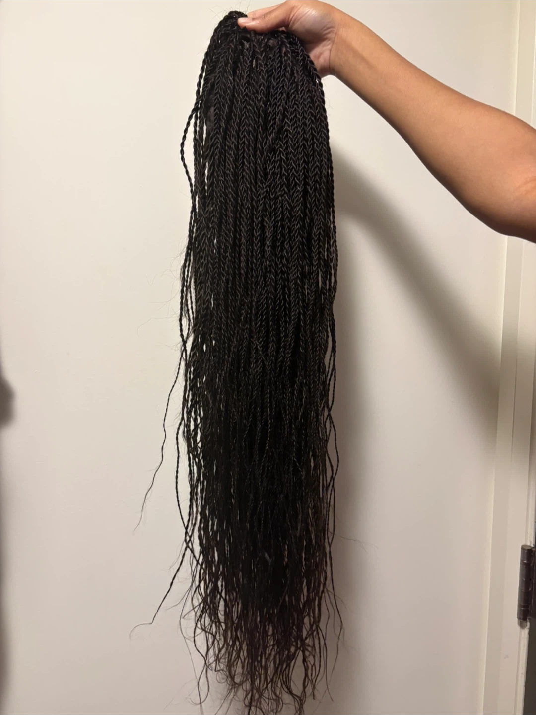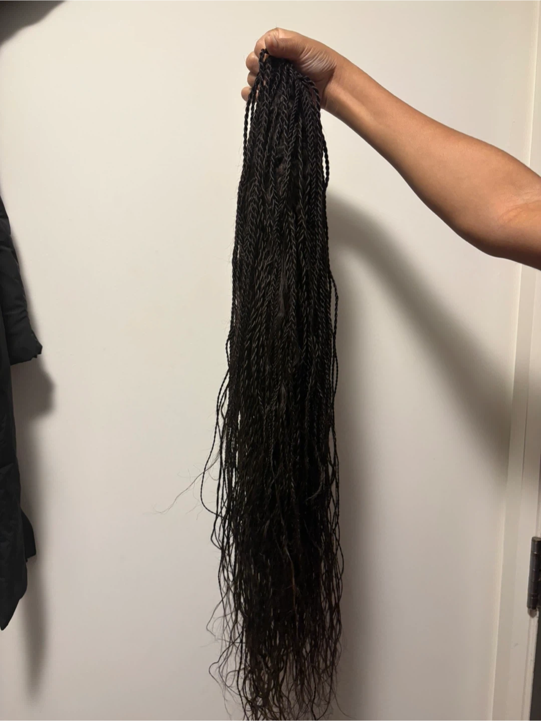 Selling a set of twist wig in a dark brown colour. not in best condition and Perfect for adding length to your hair.