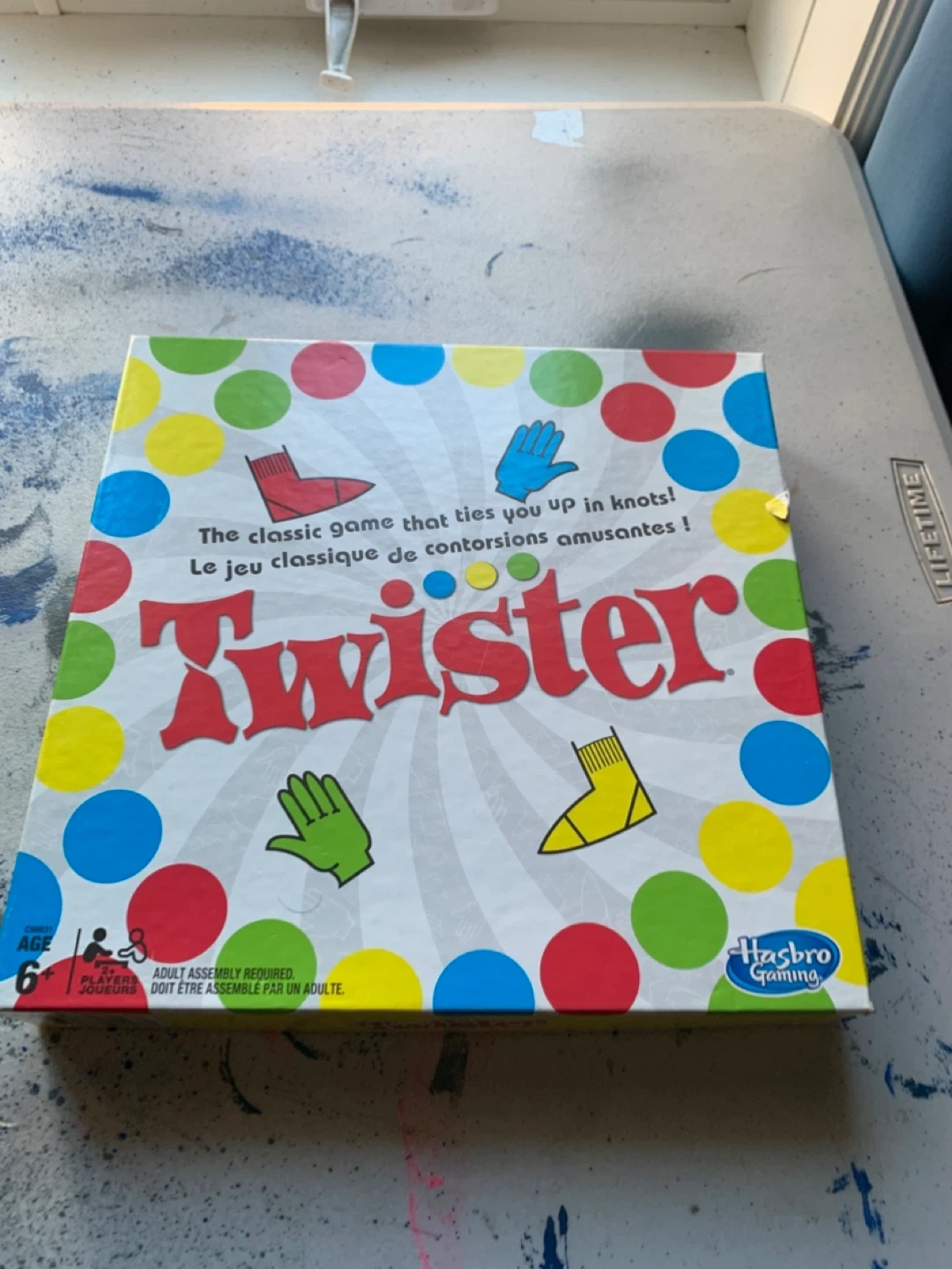 60Selling a gently used Twister game by Hasbro! It comes with the original box and all the components needed to get tangled up in some fun! Perfect for family game night or a get-together with friends
