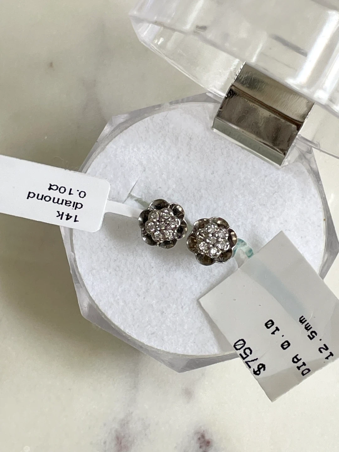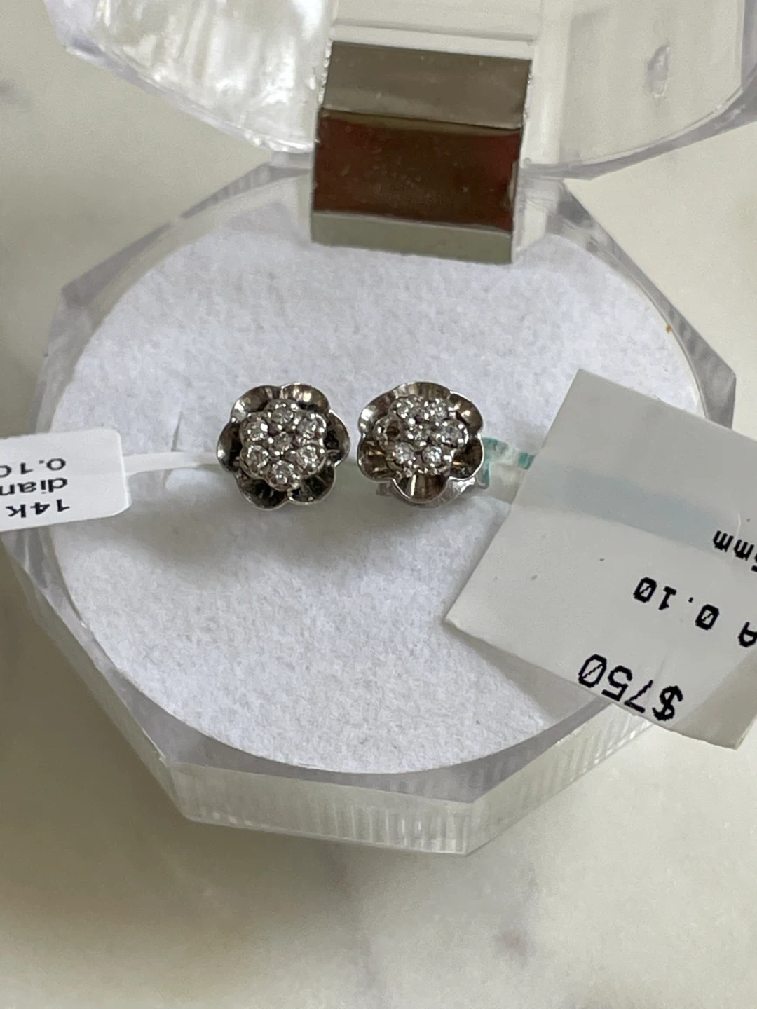 Flower Shaped 14K Diamond earrings - White Gold - $1000 appraisal included.