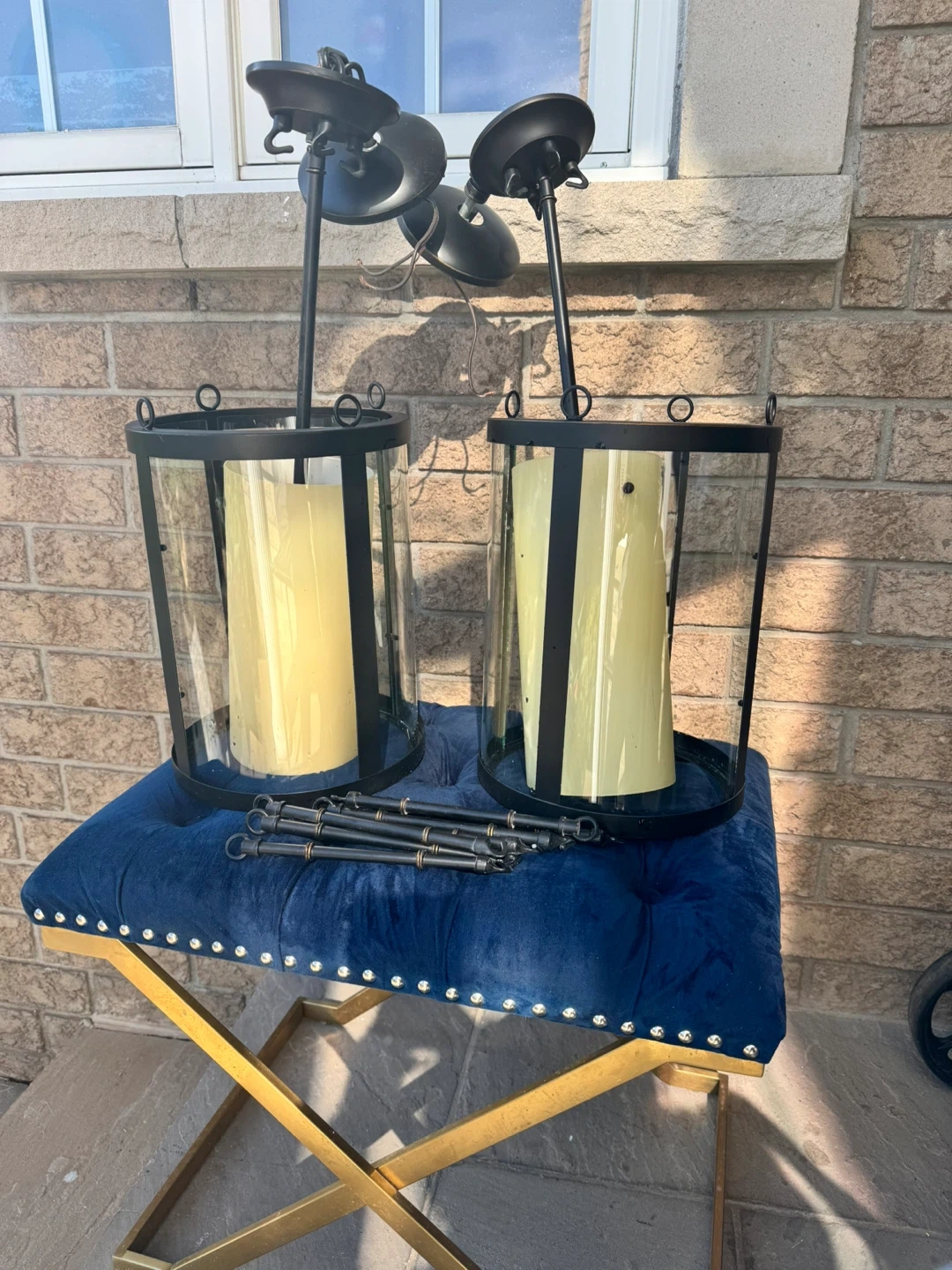 10Two black metal and glass lanterns looking for a new home! They are in great shape and would look lovely in any space
