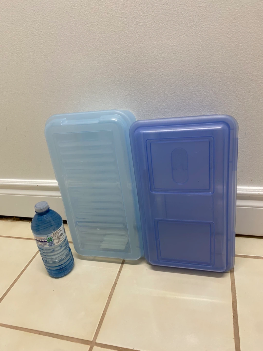 Two plastic storage boxes for sale! One is a light blue and the other is a darker blue. They're in great shape and perfect for organizing your stuff