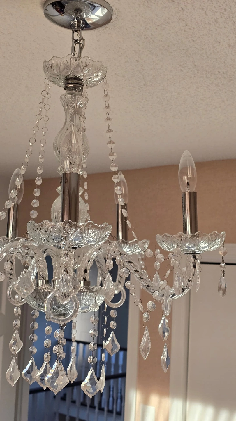 10Add a touch of elegance to your home with this beautiful crystal chandelier! It features delicate crystal accents and a classic design. Perfect for a dining room, living room, or bedroom