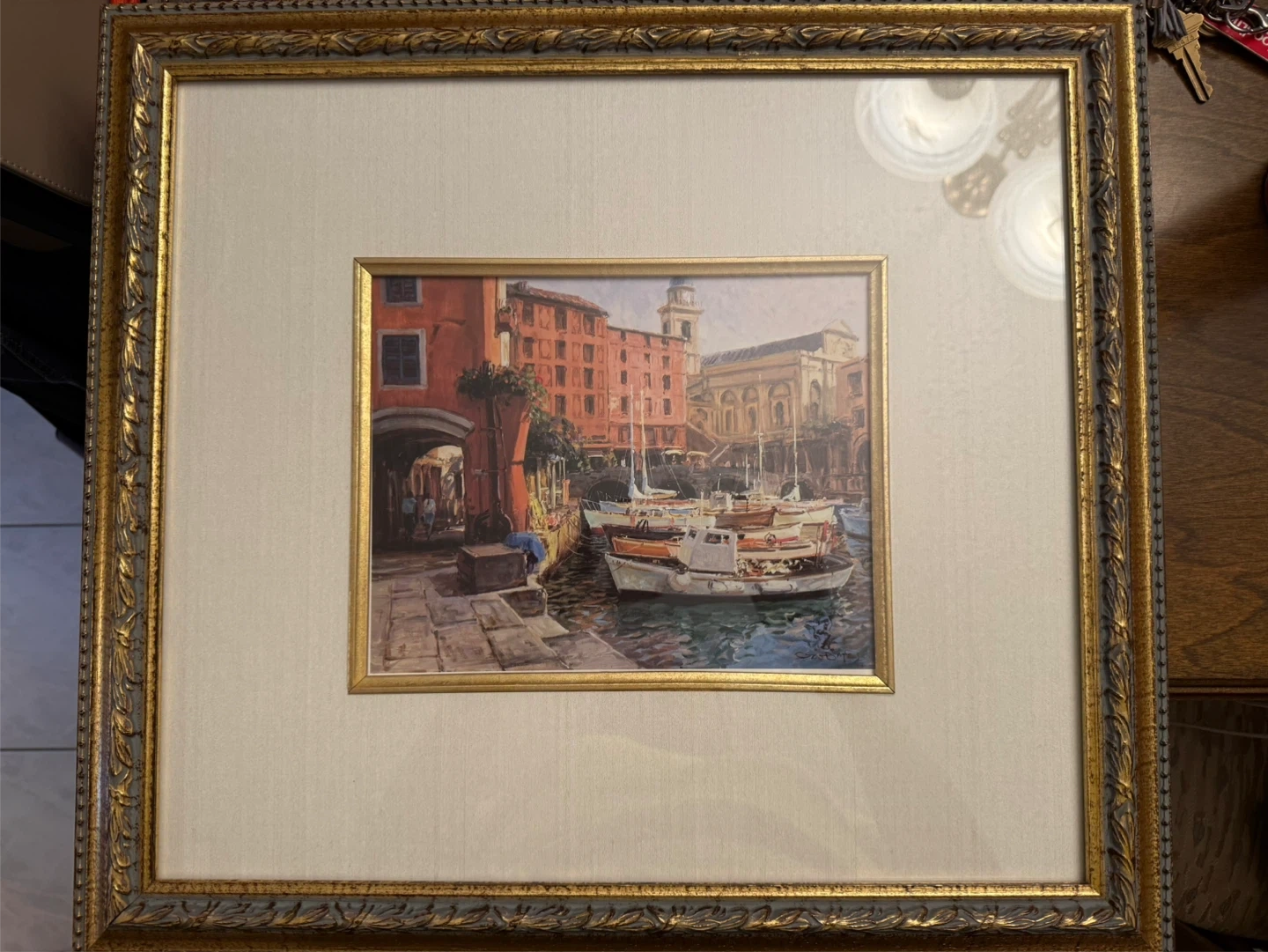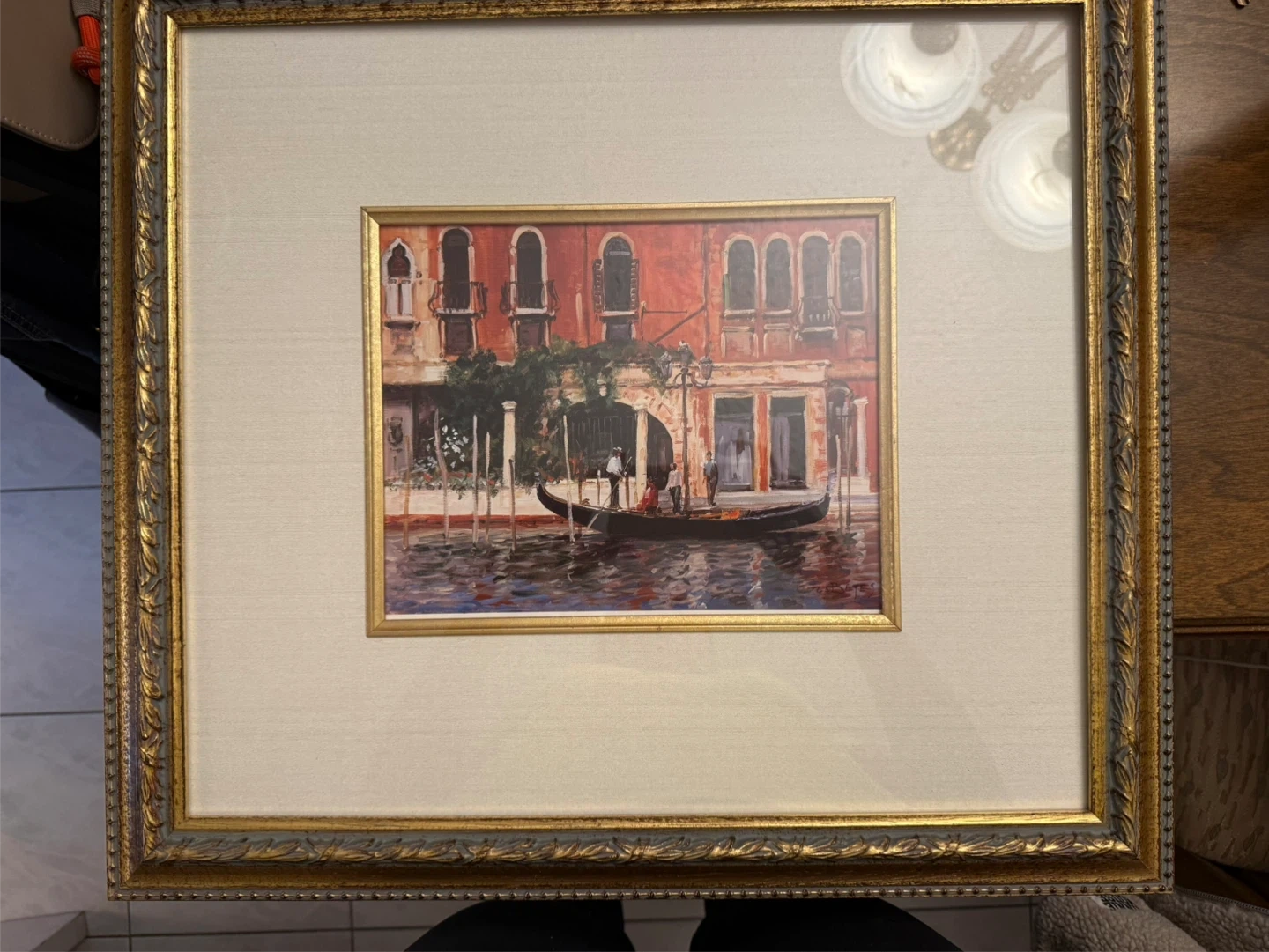 Selling two prints with intricate gold framing depicting Venice. 23” x 19”