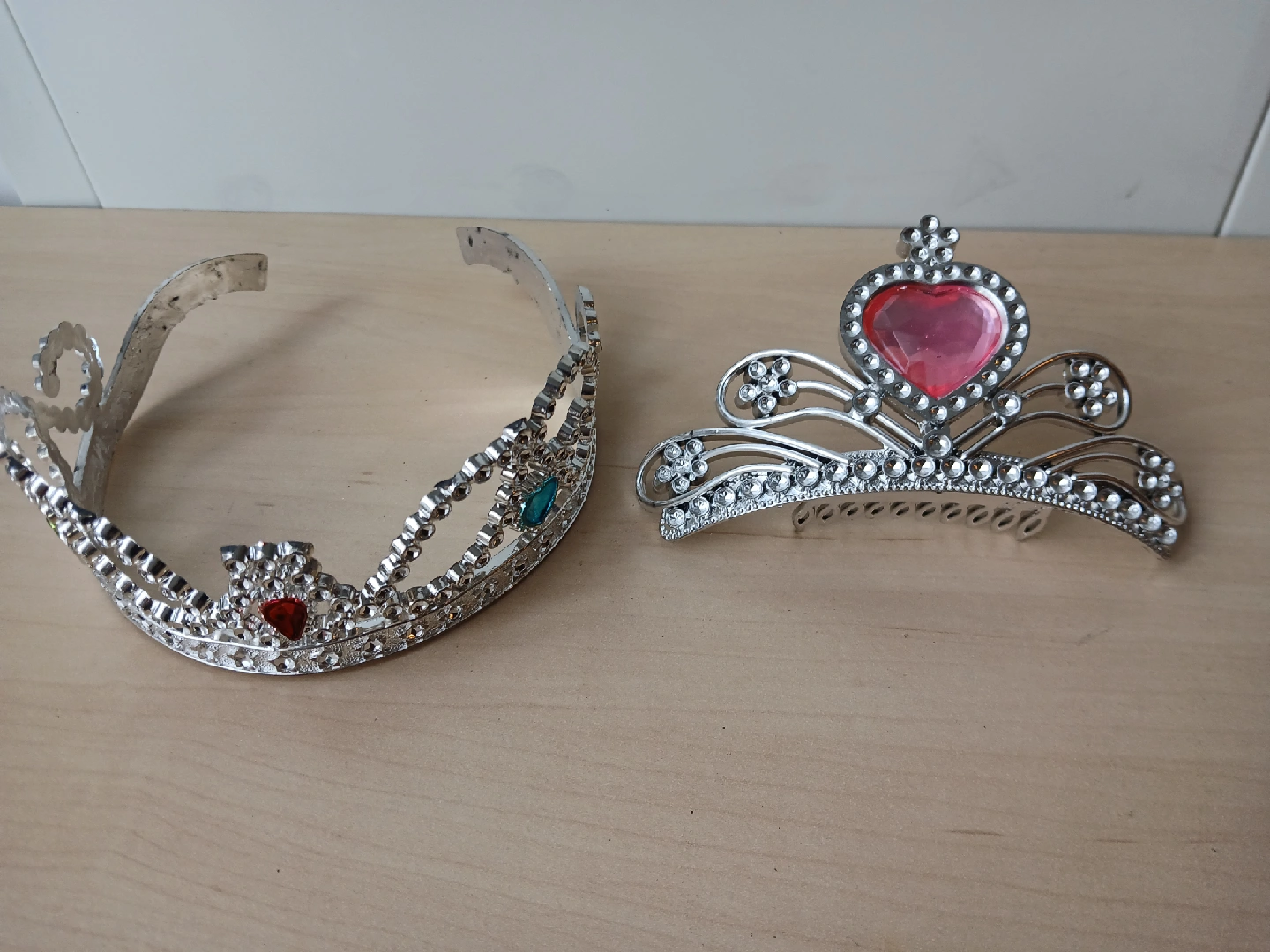 1000+*Pick up ONLY at location shown on ad. No delivery. Selling two cute princess tiaras! One has a pink heart and the other has red and green accents. They're perfect for dress-up or a costume party!