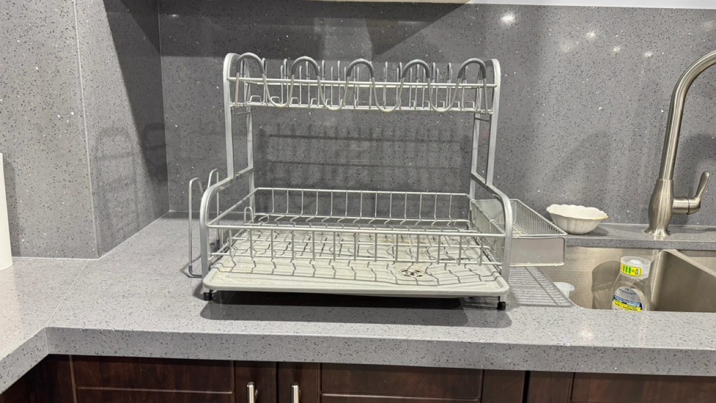 Silver dish rack, two tiers. Plate and cup holders included. Good for kitchen organization. Good condition Pick up in Markham or Stoufville