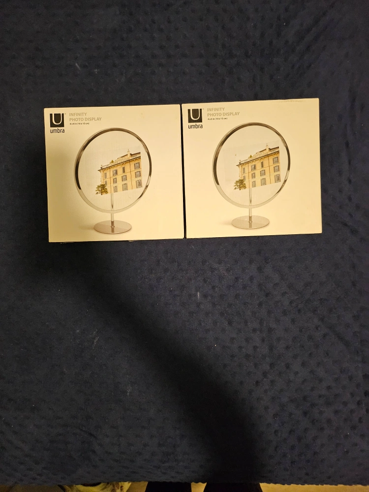 48Two brand new Umbra Infinity photo displays. Chrome finish. Circular mirrors. Perfect for displaying favourite photos.