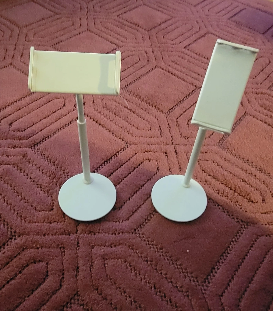 Set of two minimalist phone stands. Great for desk or countertop use. Compact and portable design. White colour.