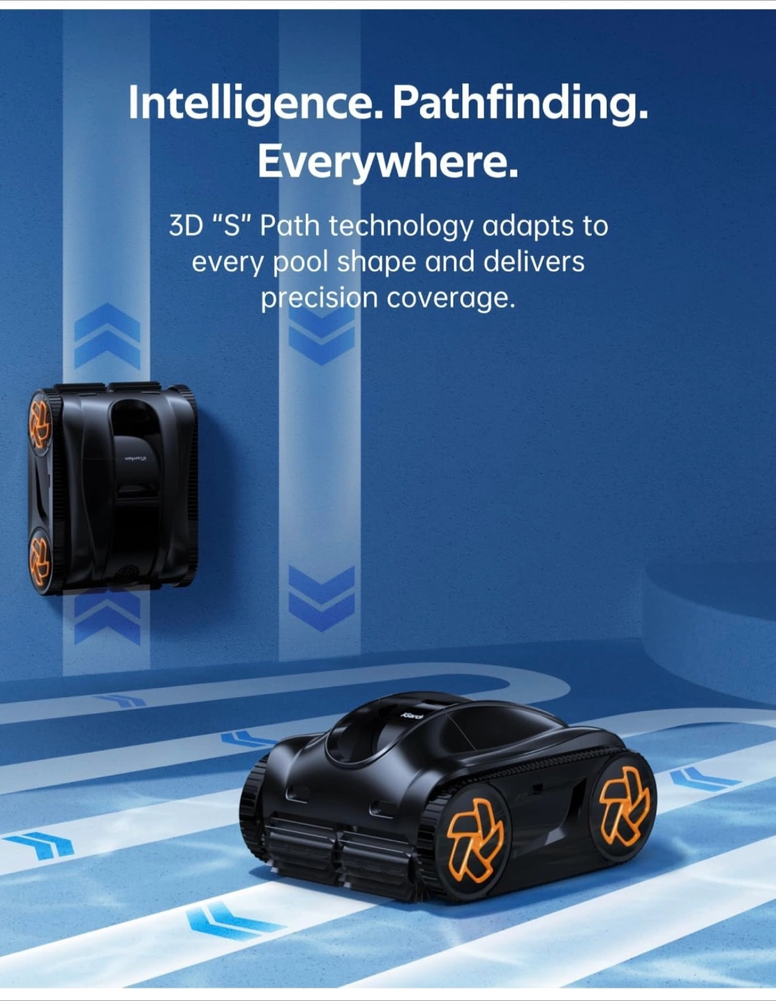 iGarden K60 robotic pool cleaner. Cordless, 6-hour runtime. Smart navigation cleans floor, walls, and waterline. Self-parking. 4L debris basket. Ideal for above and in-ground pools.