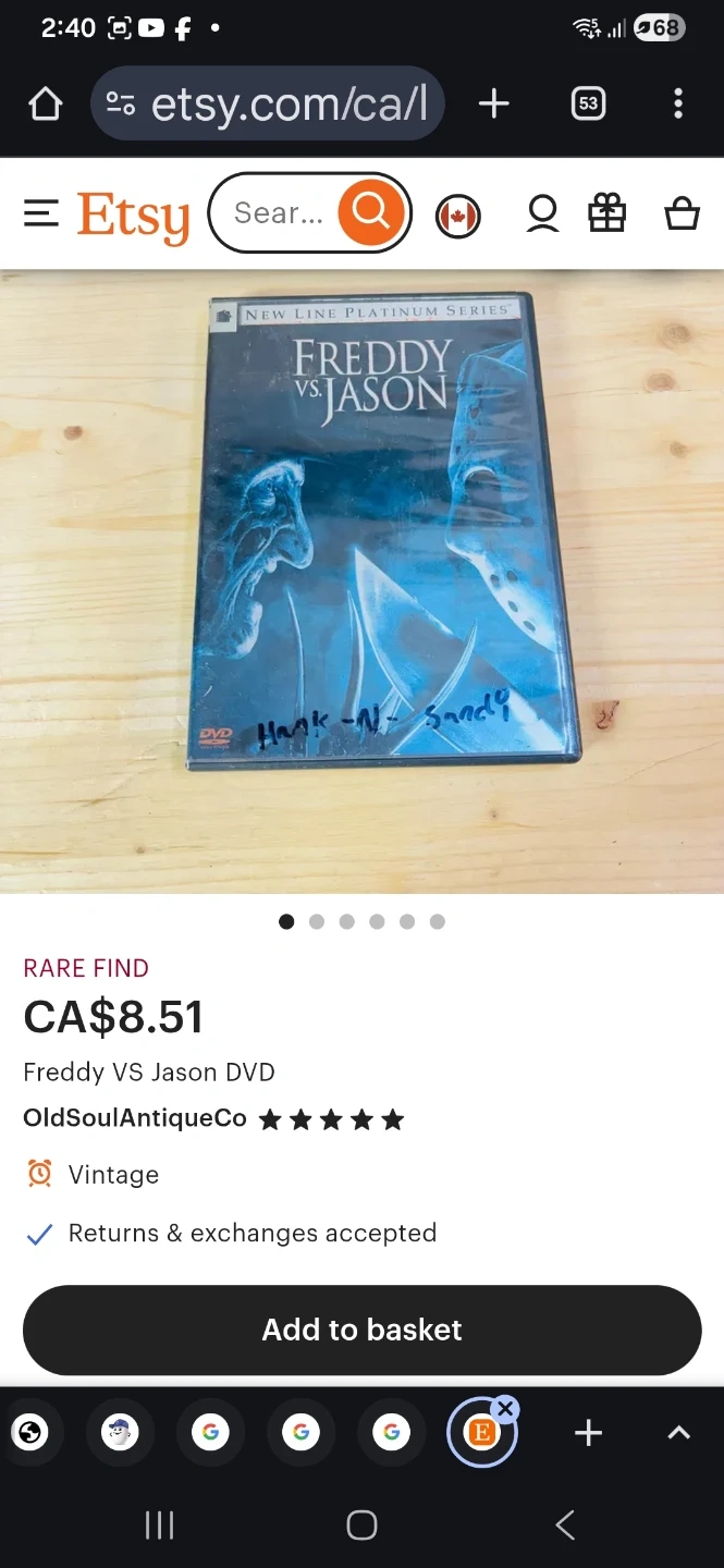 Buy & SellFreddy vs. Jason DVD πFreddy vs. Jason DVD π$1Freddy vs. Jason DVD, Disc 2. Paper cover is damaged but DVD appears to be brand new/unused. ConditionGoodWHERE TO MEETThe Queensway near Park Lawn RdView MapSELLERBernieQueensway1000+380 reviews0 chatsΒ·0 favoritesΒ·1 viewsSEND CHAT TO SELLERHi Bernie! Iβm interested in your listing.Hi Bernie! Iβm interested in your listing.Get the Karrot app to chatSign In to chat
