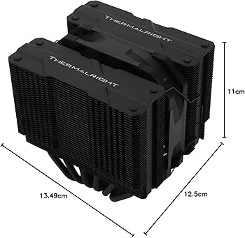This is a Thermalright Peerless Assassin 120 Mini CPU cooler in black. It features AGHP Gen.4 heatpipe tech and a full dark coating. The dimensions are 13.49cm x 12.5cm x 11cm. This cooler is suitable for keeping PC components running at optimal temperatures.