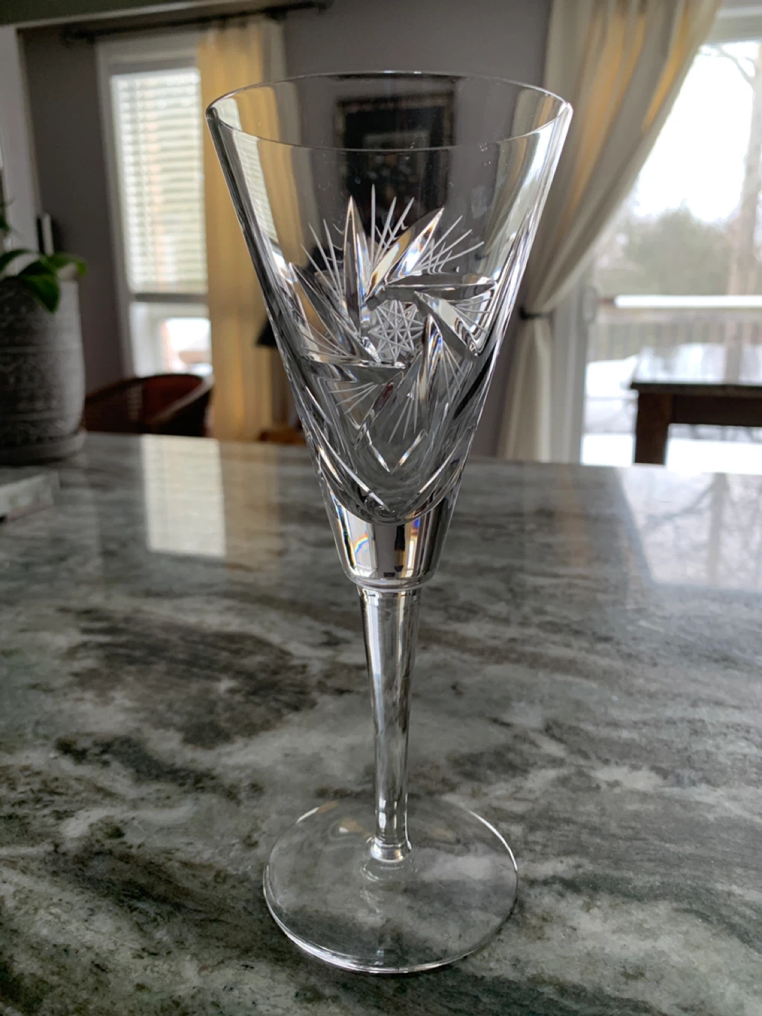 4 champagne glasses. Pinwheel design popular in the ‘ 70’s. Great condition- no chips or other damage. All four for $10.00.