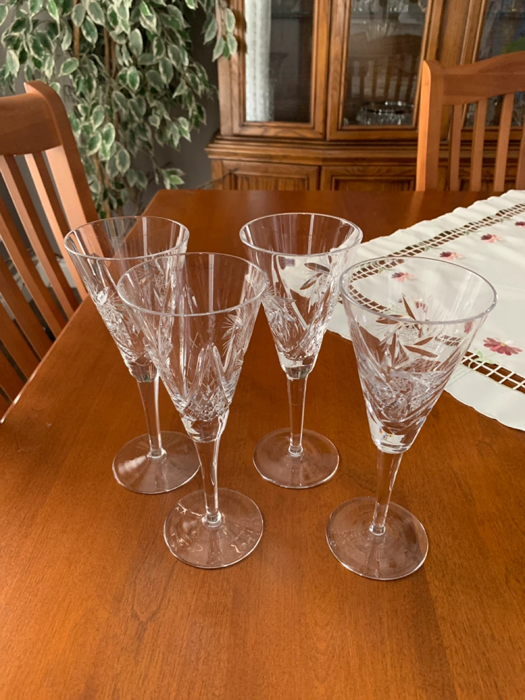 4 champagne glasses. Pinwheel design popular in the ‘ 70’s. Great condition- no chips or other damage. All four for $10.00.