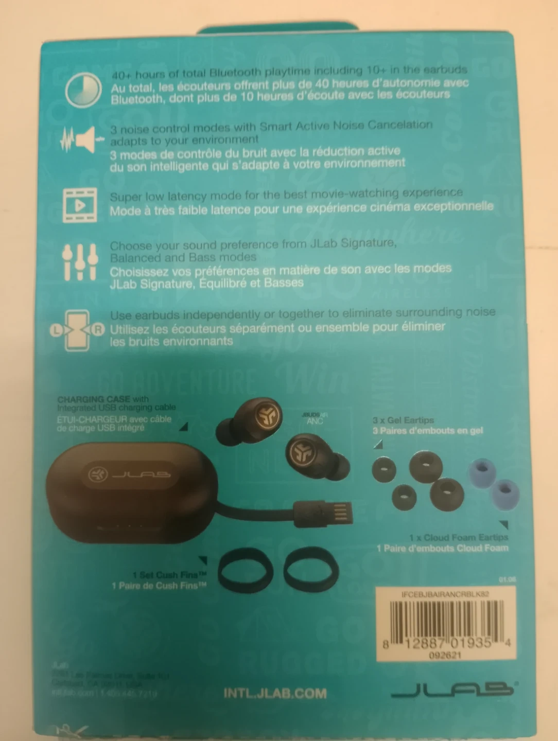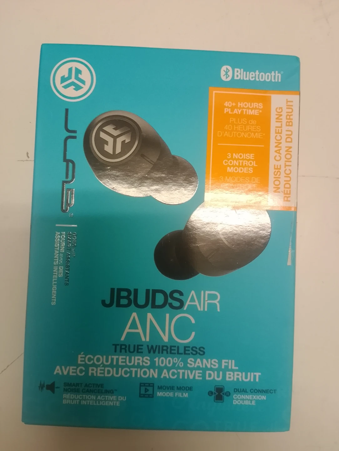 These JBuds Air ANC earbuds offer 40+ hours of total playtime with Bluetooth. They feature 3 noise control modes and a movie mode with low latency. Choose your sound preference and use them independently or together!