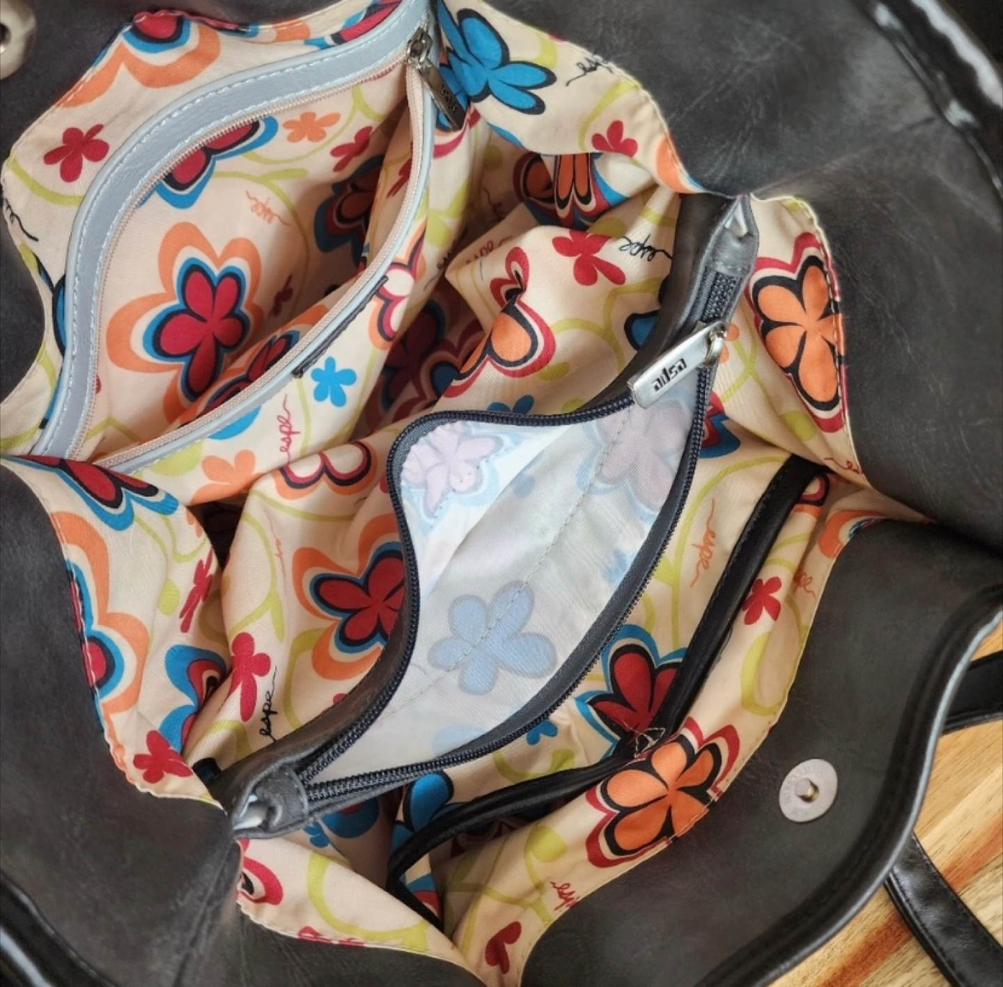 * Interior: Floral Lined with Multiple Pockets