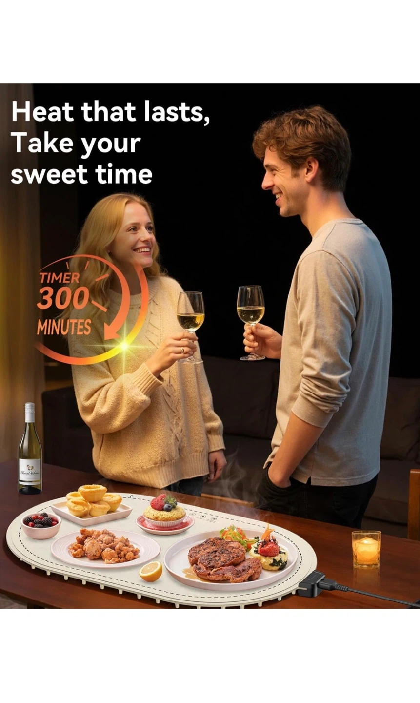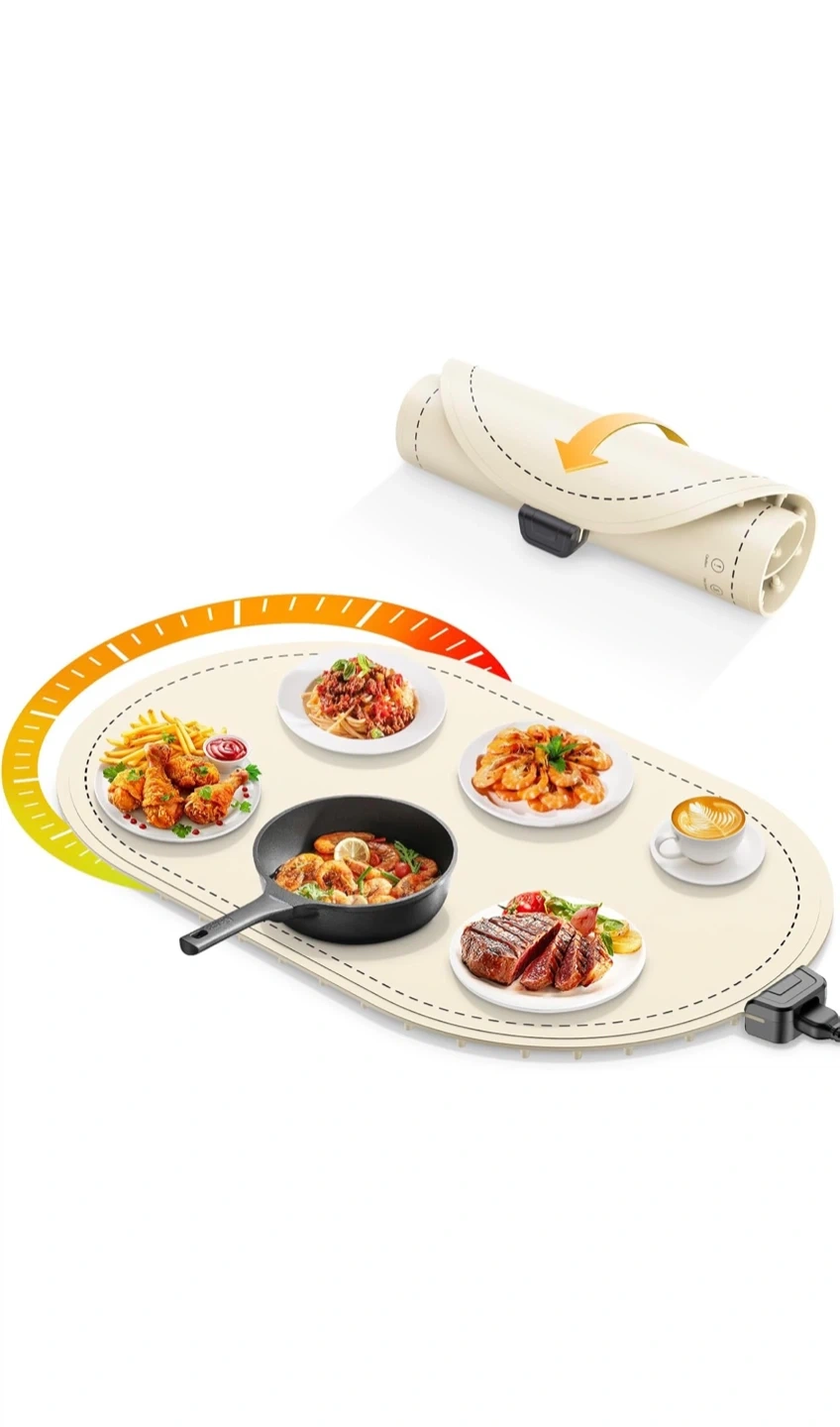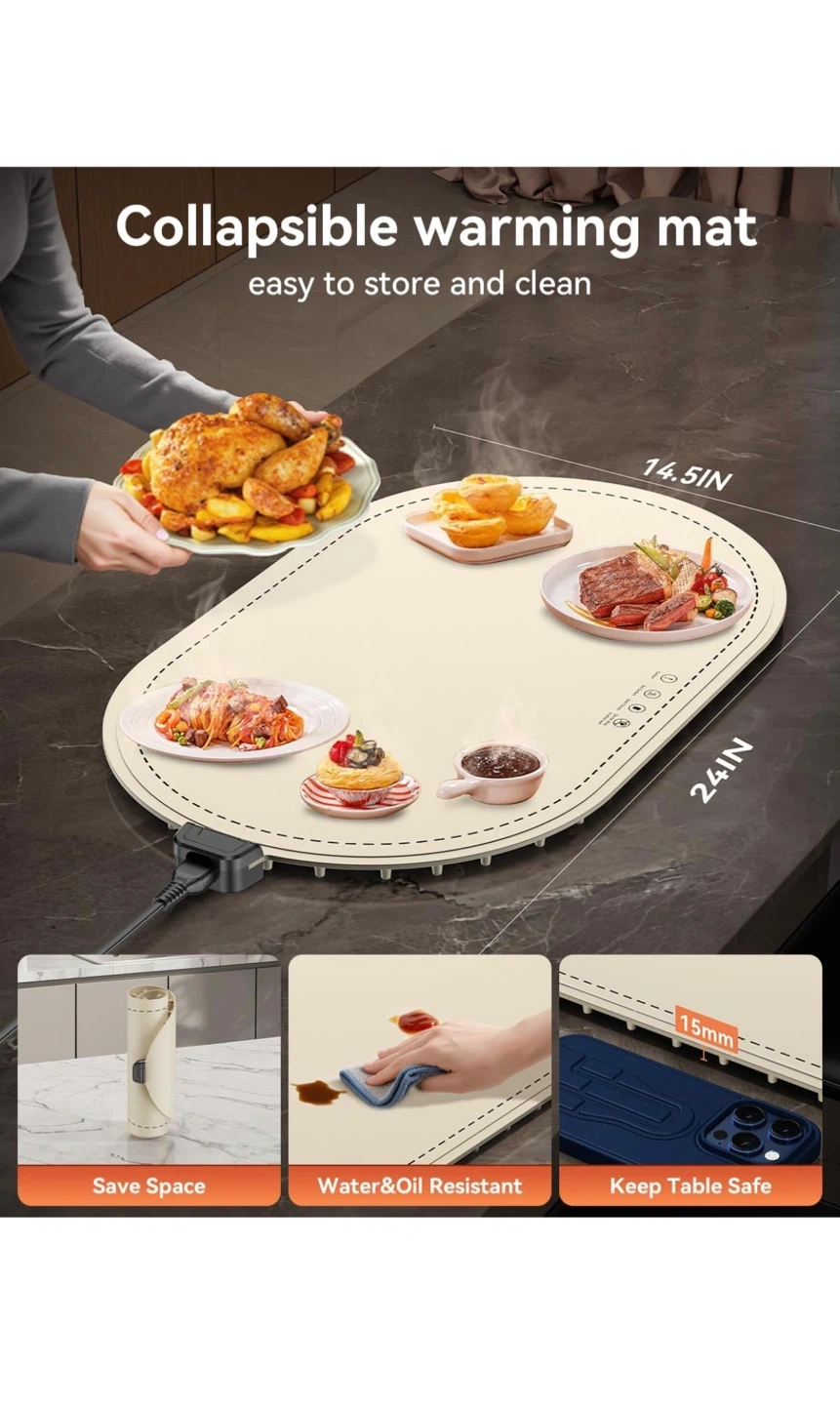 Warming Mat for Food, Food Warming Mat with Heat Insulation Pad, Fast Full-Surface Heating Mat for Food