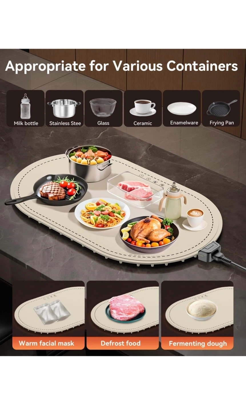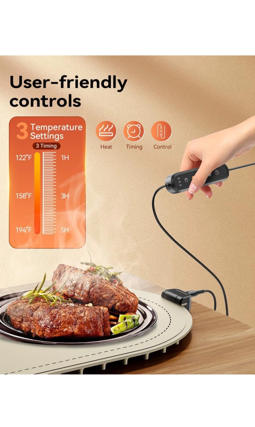 Warming Mat for Food, Food Warming Mat with Heat Insulation Pad, Fast Full-Surface Heating Mat for Food