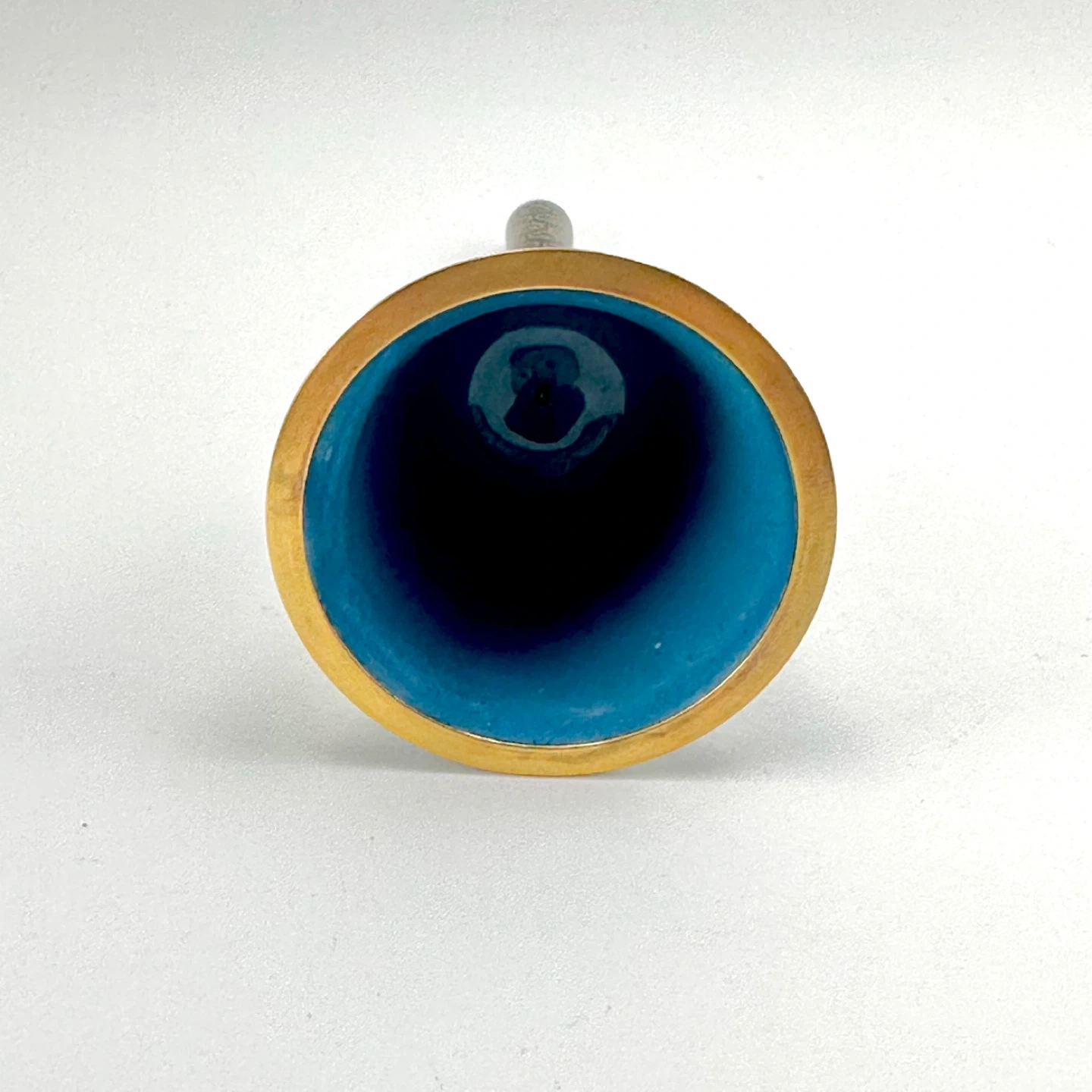Cloisonné black bell with floral design, bell ball inside missing (price reflects this condition already). Measures 4.5” tall x 2.5” wide