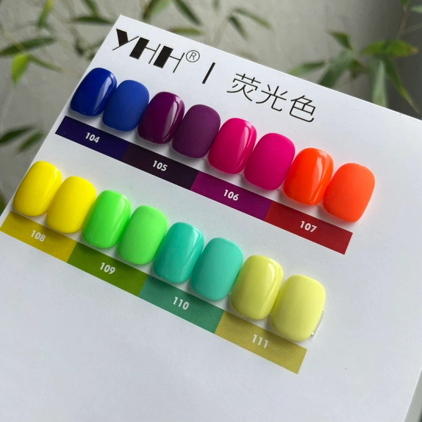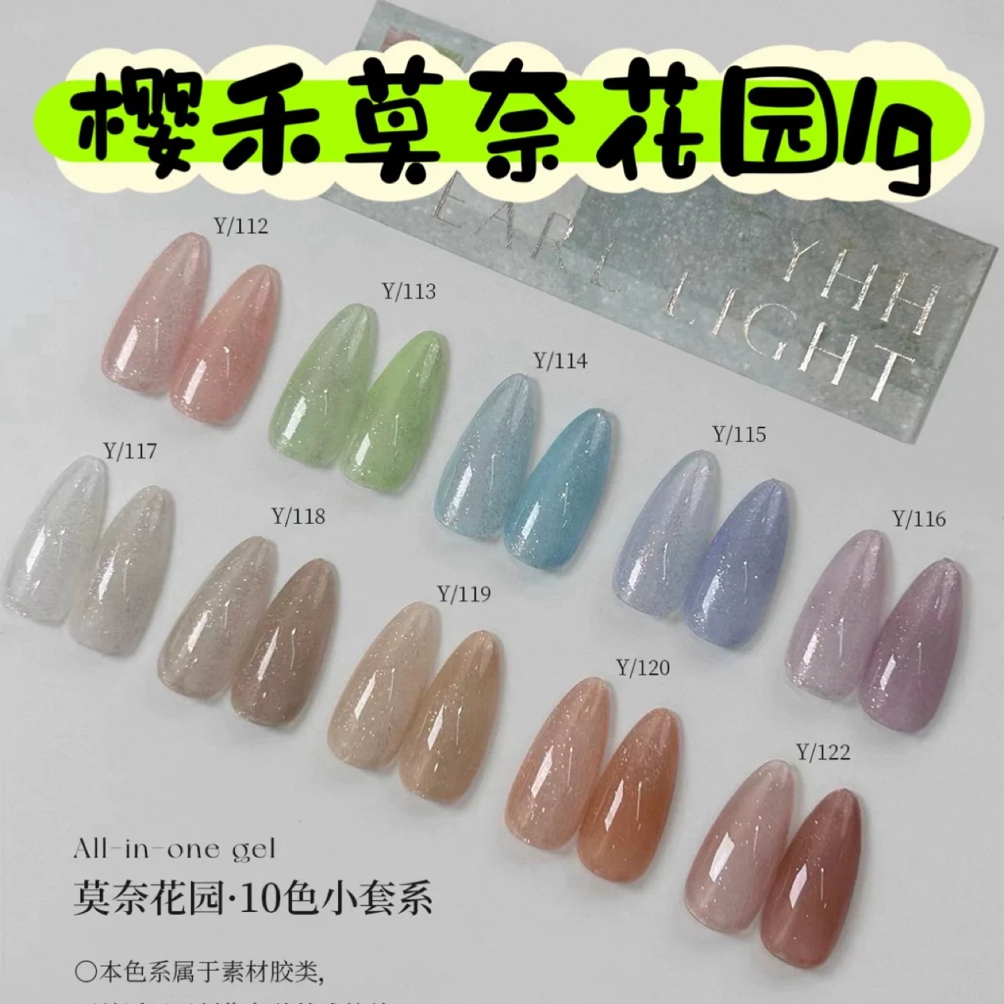 A collection of YHH Painting gel nail polish, featuring 56 assorted colours. Includes shades from the 'Sakura Garden' 10-colour set. Shades are labelled with Y/### and P## codes.