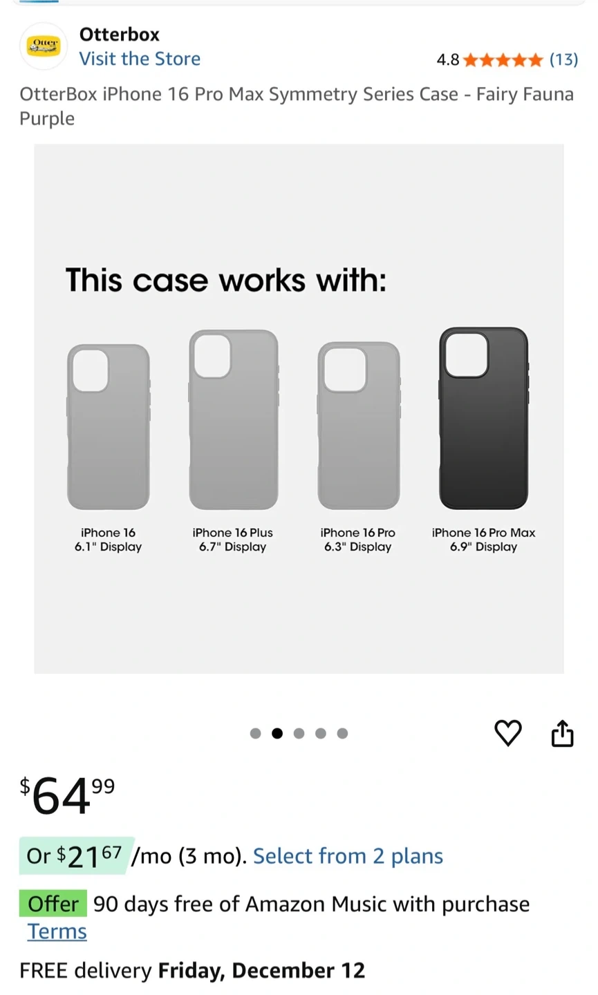 This OtterBox Symmetry Series case offers 3X as many drops as military standard. It's ultra-slim and comes with premium reactive buttons. It's designed for iPhone 16 Pro Max with MagSafe compatibility.